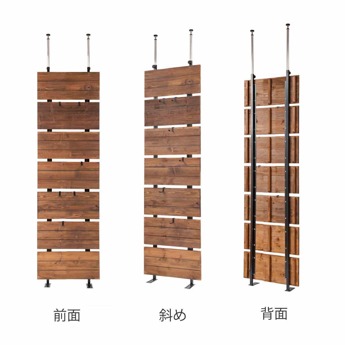 突っ張り ウォールパーテーション 幅56cm フック6個付 天然木 日本製