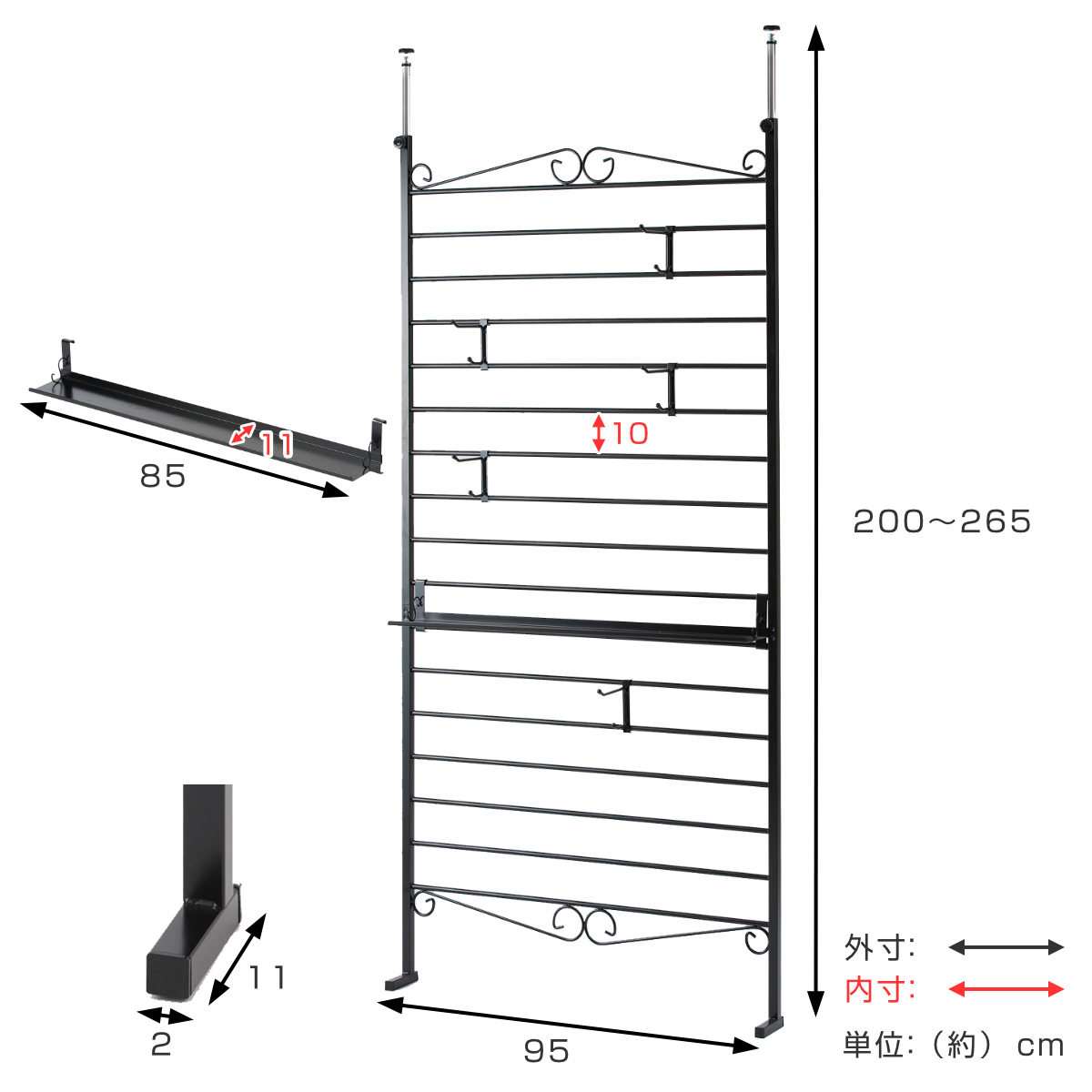 | サイズ | 本体:約 幅95×奥行11(脚部)×高さ200~265cm |