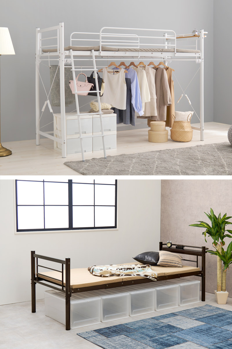 ライフスタイルに合わせて使い方を変えることができる2WAY仕様のロフトベッドです。引越しやお子様の成長などで使い方が変わっても、組み替えるだけで、通常のシングルベッドとしてもお使いいただけます。