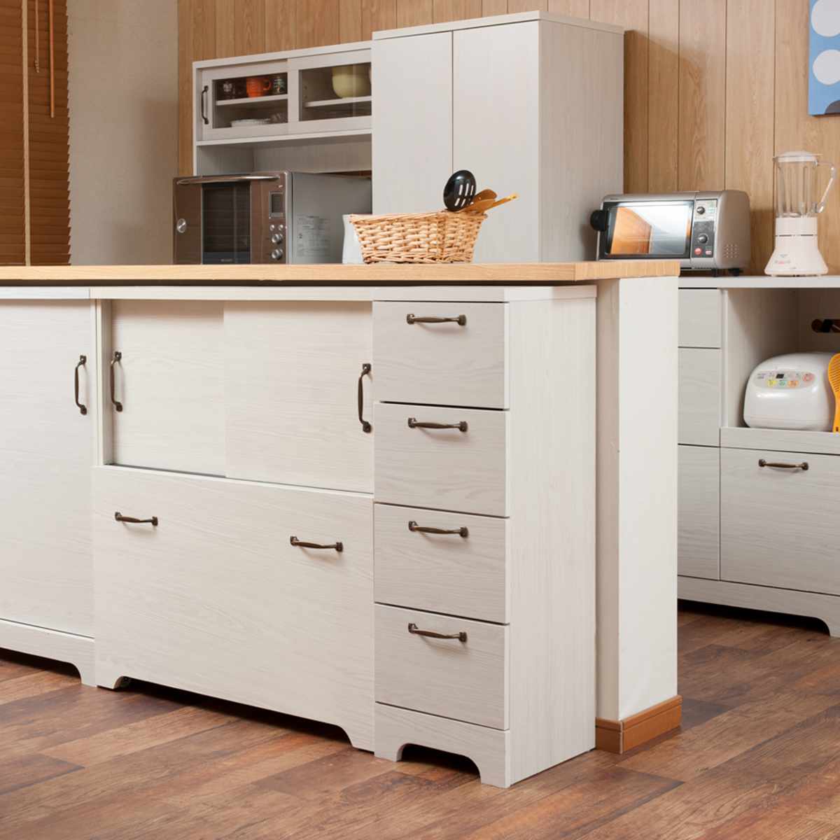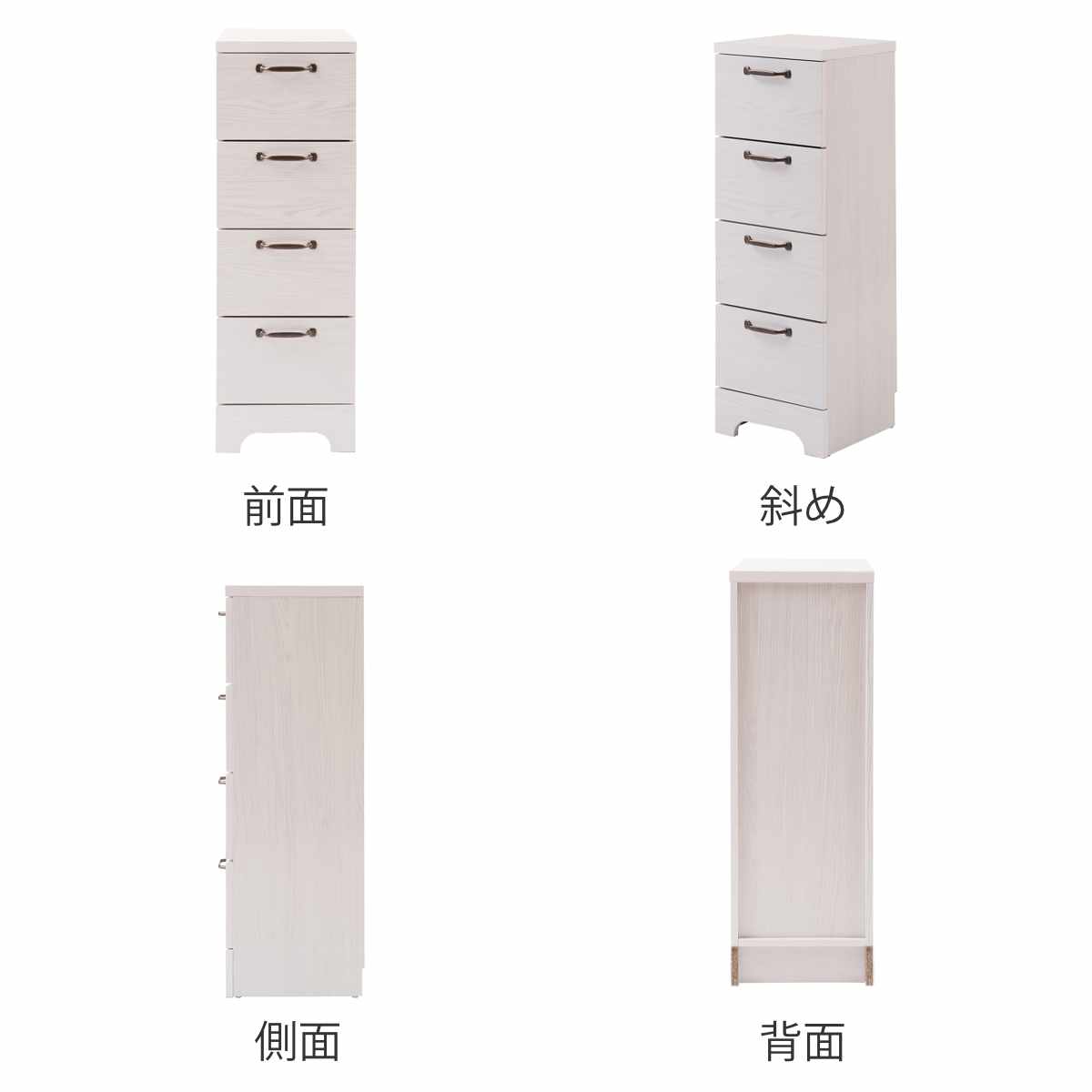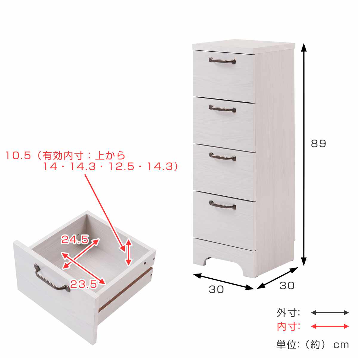 カウンター下収納 スリムチェスト 幅30cm 4段 ホワイト木目