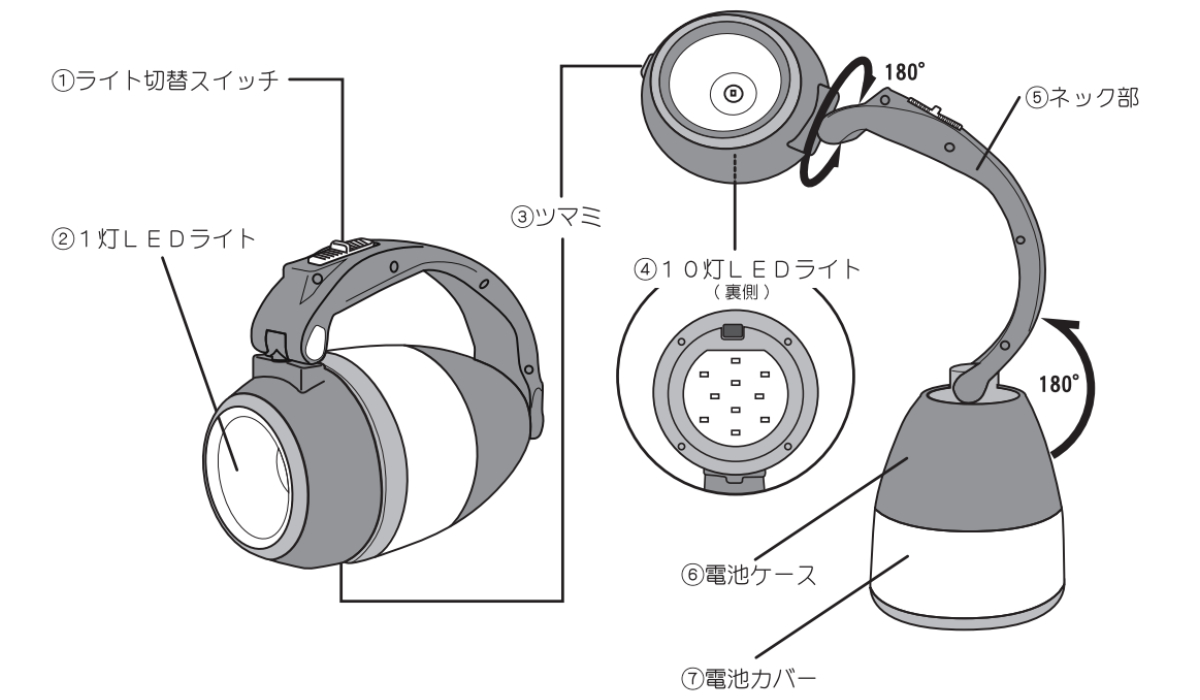 ※誤って直接LEDライトを見ないよう、とくに気をつけて点灯してください。