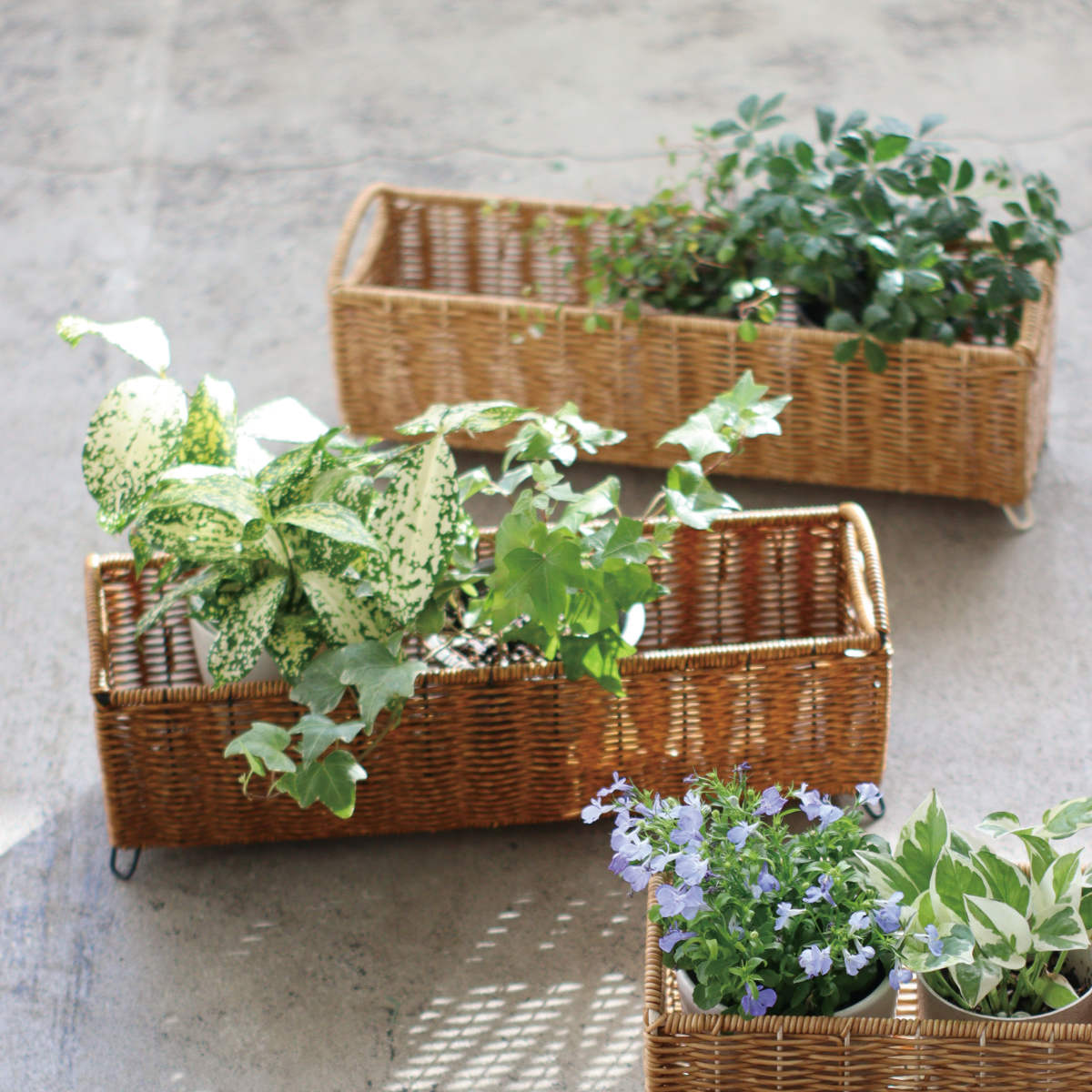 お気に入りの観葉植物を入れて鉢カバーとしてご使用いただけます。Lサイズは直径9cm(3号)の鉢を4個並べることができます。