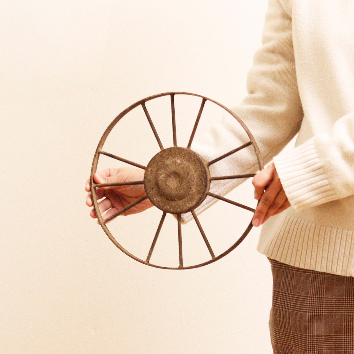 サビ加工が施された車輪が特徴的な、ヴィンテージ調のカッコいいインテリアホイールです。シンプルなデザインが、その独特な味わいを更に引き立てています。