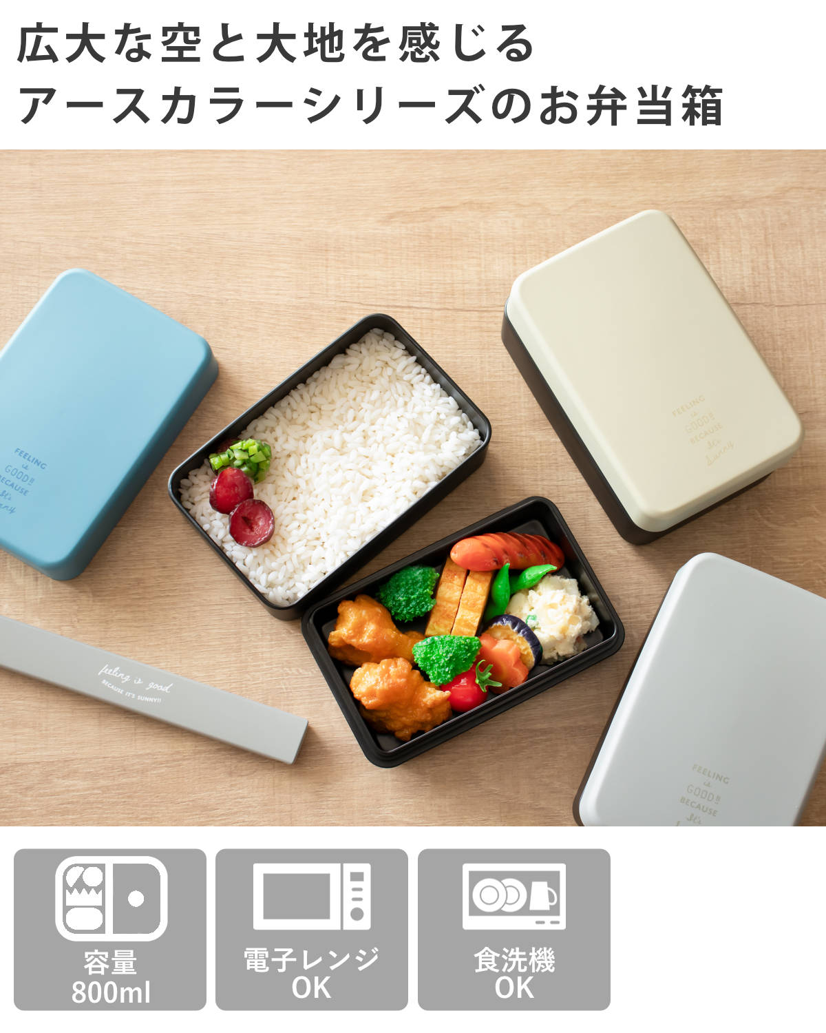 大自然をイメージしたアースカラーが魅力のお弁当箱です。マット仕上げの質感は手にしっくり馴染みます。黒色の素地でケチャップなどの着色が目立ちません。落ち着いたカラーで、長くお使いいただけるシンプルなデザインです。