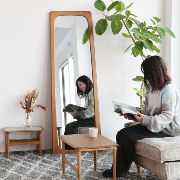 | 材質 | フレーム:天然木(オーク材) 5mm厚ミラー、繊維板(MDF) ラッカー塗装 |