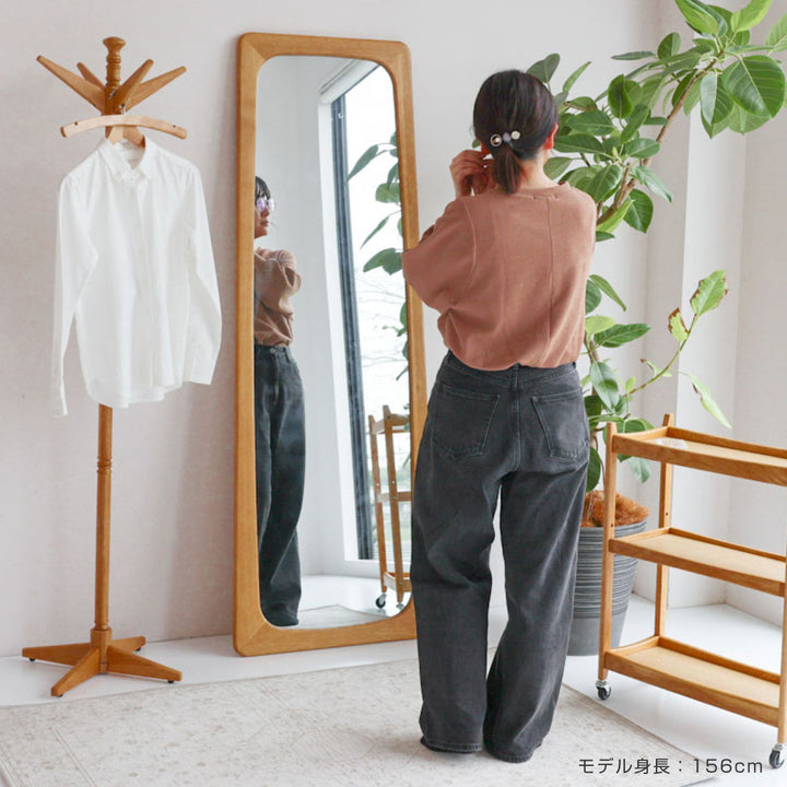 鏡面サイズは幅51cm×高さ165cmの大型設計です。頭から足先までしっかり映り、お出かけ前の身だしなみチェックがスムーズになります。