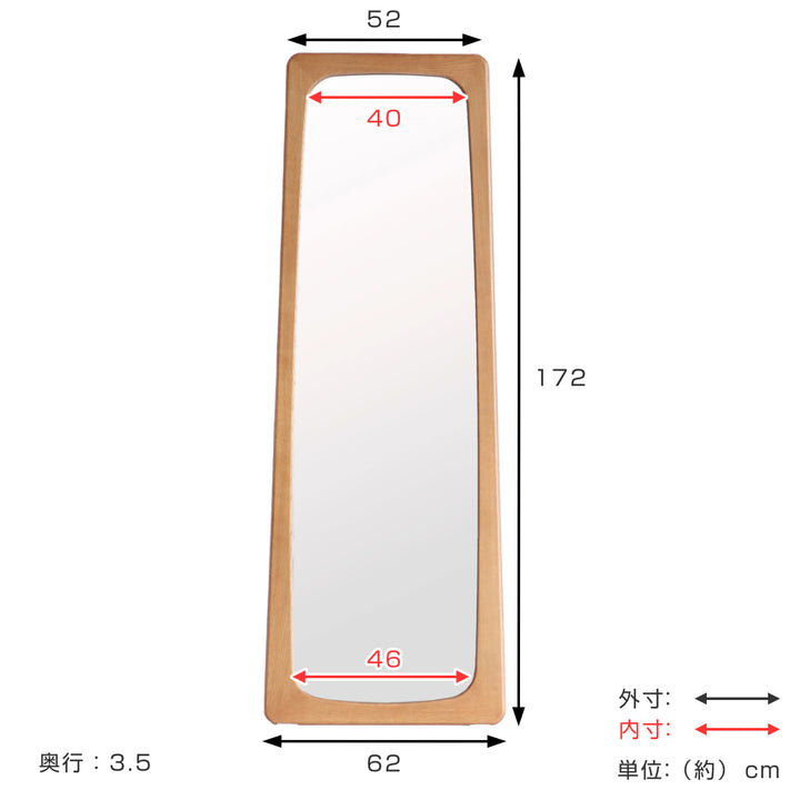 ミラー 全身 姿見鏡 幅62×高さ172cm 木製フレーム 立てかけタイプ Herit