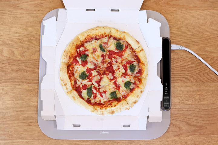 お弁当やお惣菜、ピザなども、プラスチック容器や紙箱のまま使用できます。容器ごと載せられるので、IHヒーターや電子レンジのように容器の材質を気にせず保温できます。