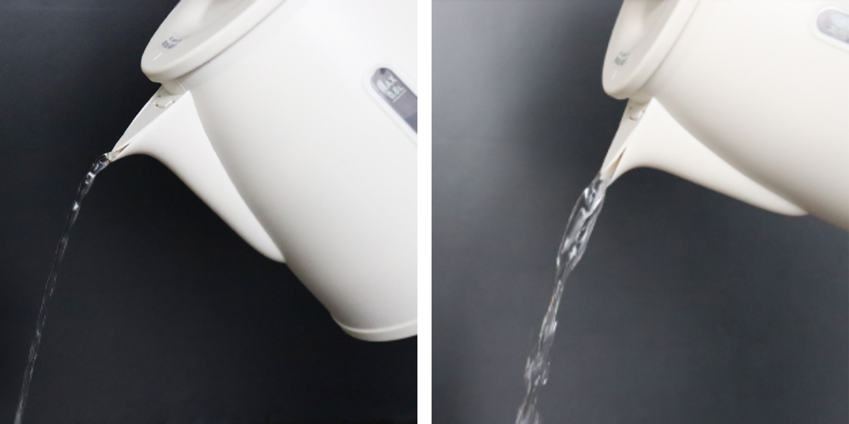 1100wのハイパワーは、スイッチを押すだけですぐにお湯が沸かせます。湯沸かし時間の目安は、カップ1杯(140ml)約1分20秒。満水容量(0.8L)約5分20秒です。素早くお湯を沸かすことができるので、忙しい朝の必需品です。