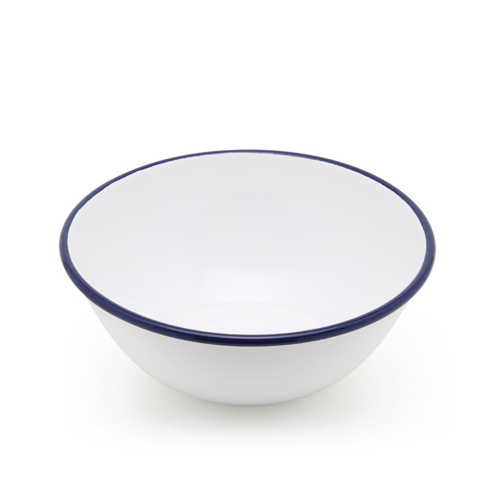 清潔感のあるネイビーの縁取りのホーローボウル 19.2cm