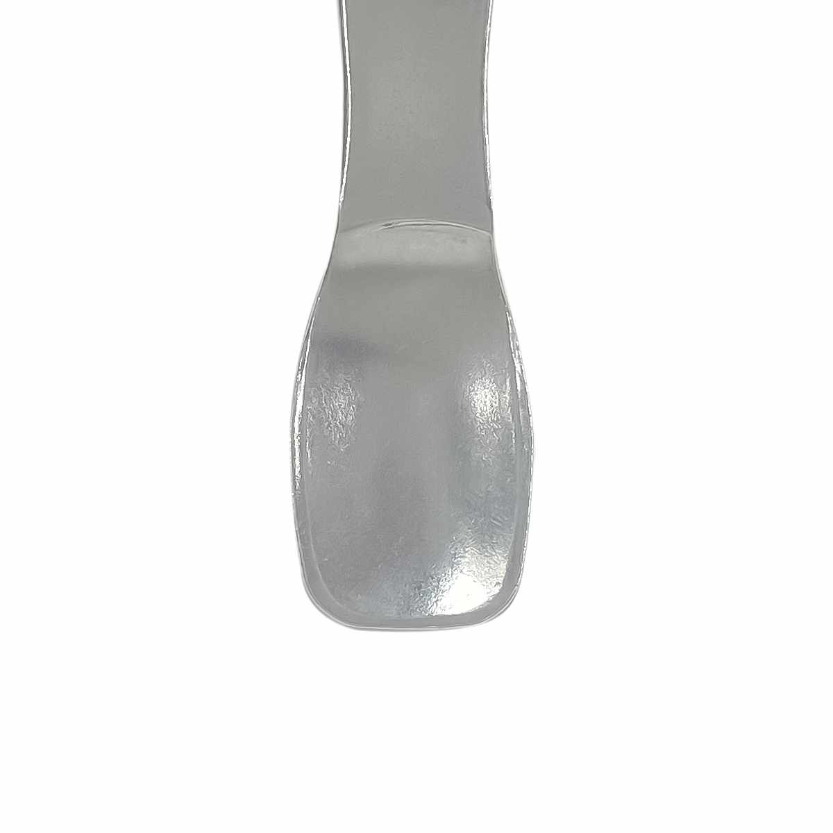 食べ物をすくう部分が通常スプーンに比べて、幅が広く、浅めに作られています。アイスクリームを広く薄くすくうことで、舌に乗せた時にふわっと溶けて、甘みを早く感じられるので、よりおいしくお召し上がりいただけます。