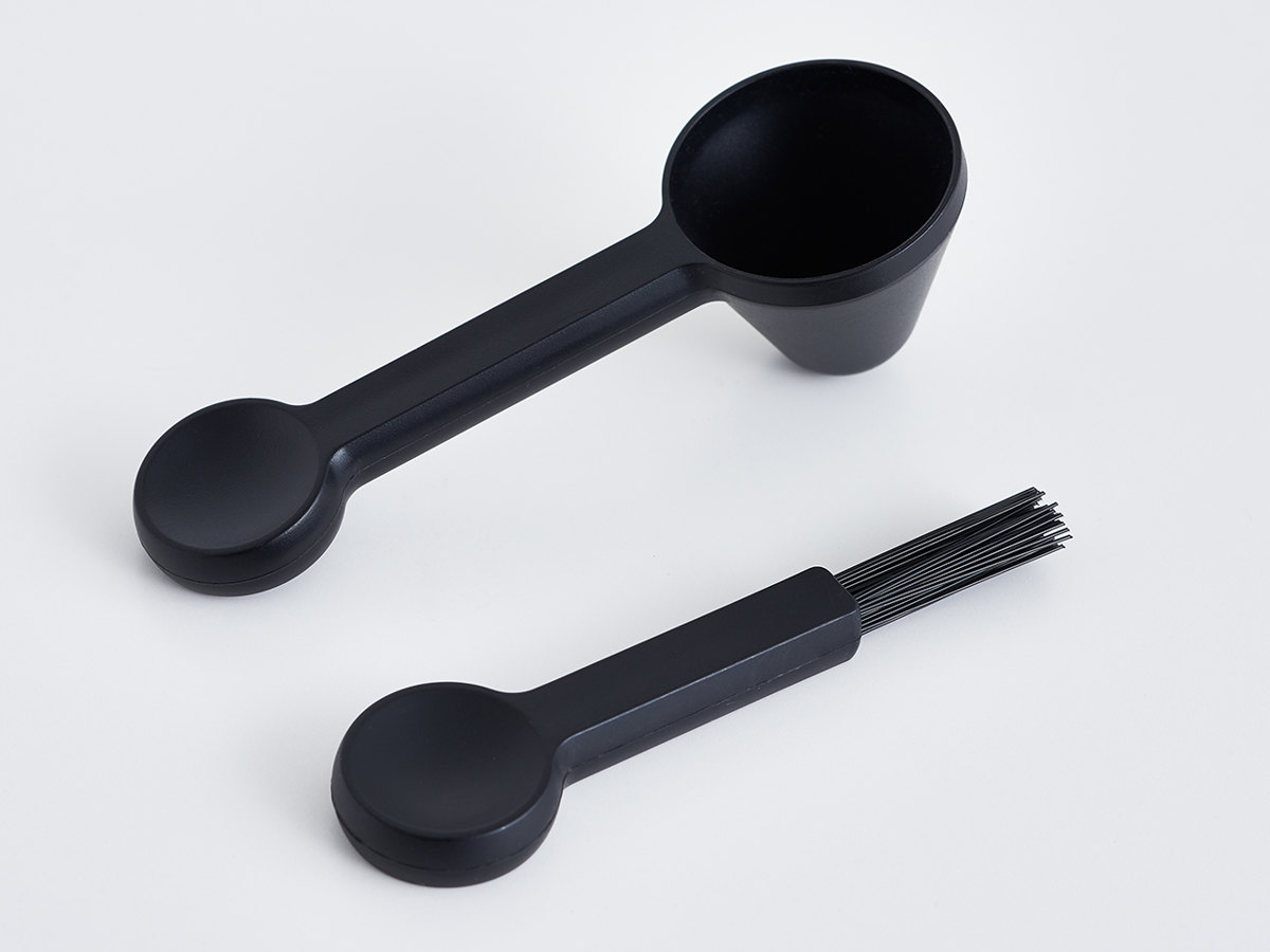 専用の掃除ブラシと計量スプーンは、ホッパーのフタに収納できます。別で保管する必要がないため紛失を防ぎ、必要な時にすぐに取り出せます。