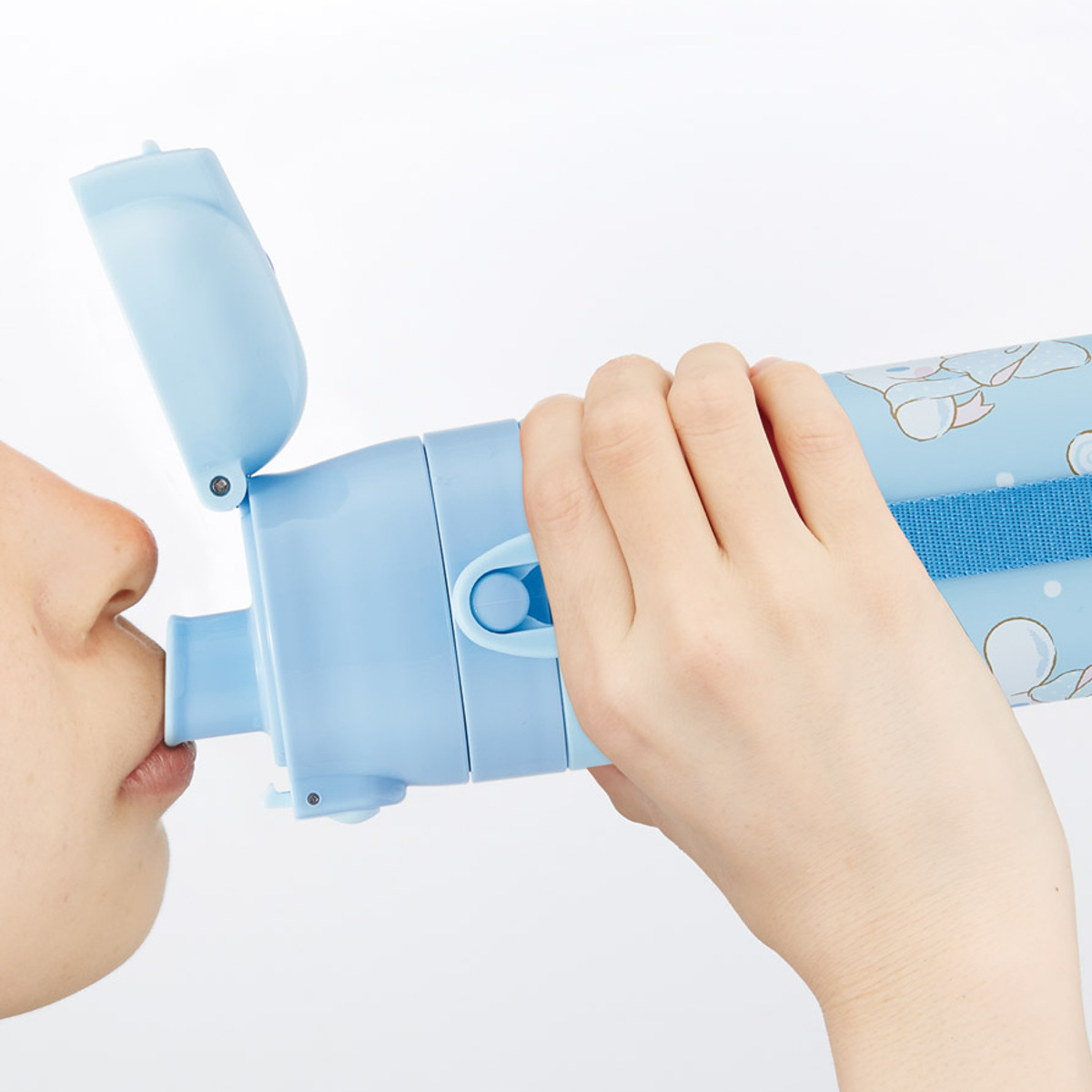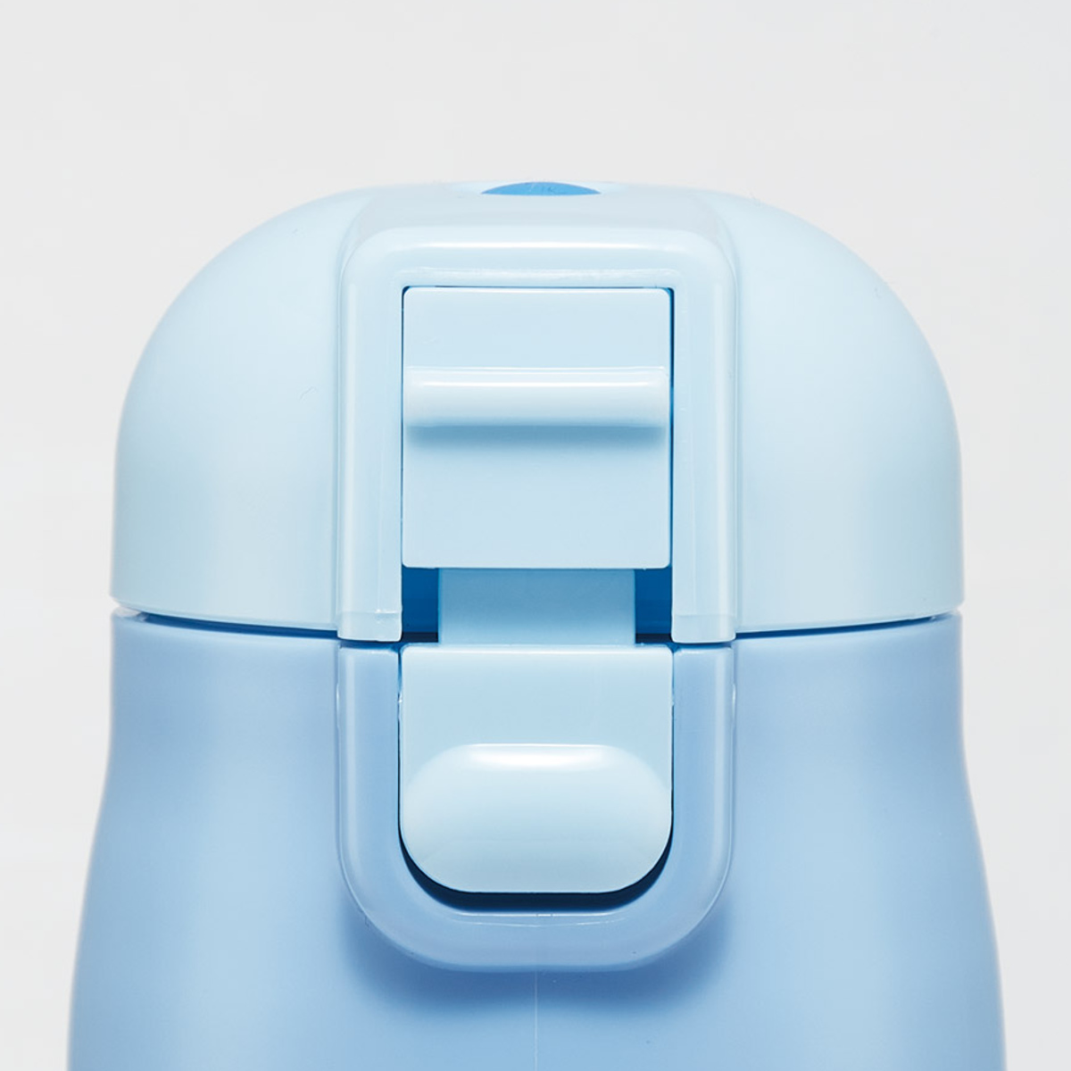 水筒の蓋はボタンを押すだけで開けることができるワンタッチ式です。飲み終わったら蓋をカチッと閉めるだけなので、小さなお子様でも簡単に開閉できます。