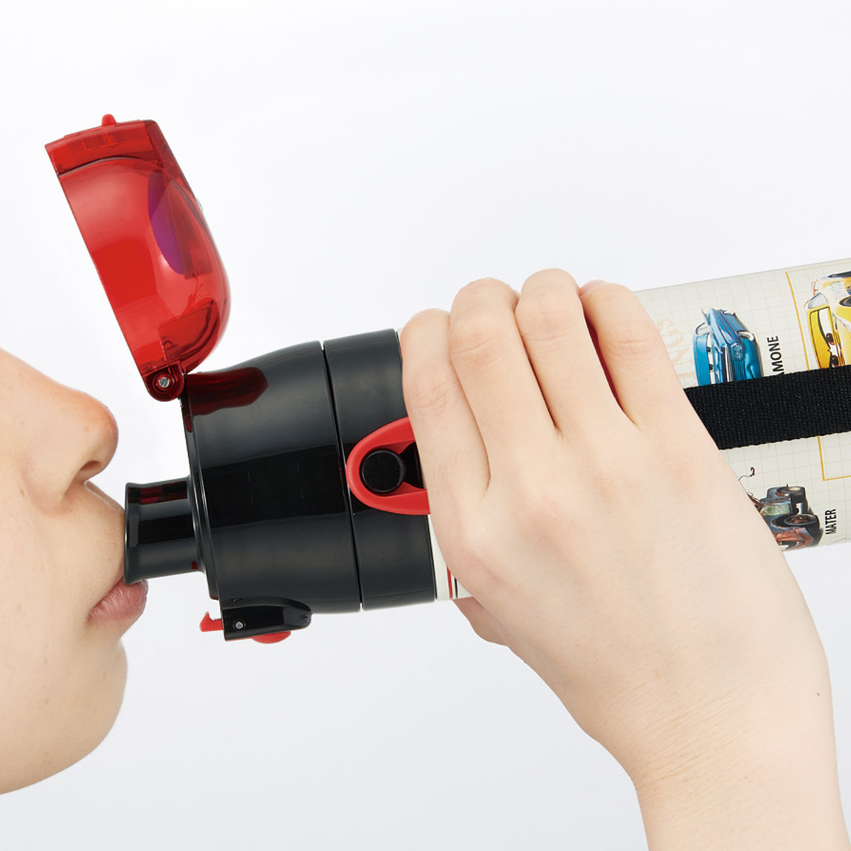 飲んでいる時に蓋が邪魔にならないキャップロック設計なので、片手で素早くスムーズに水分補給できます。