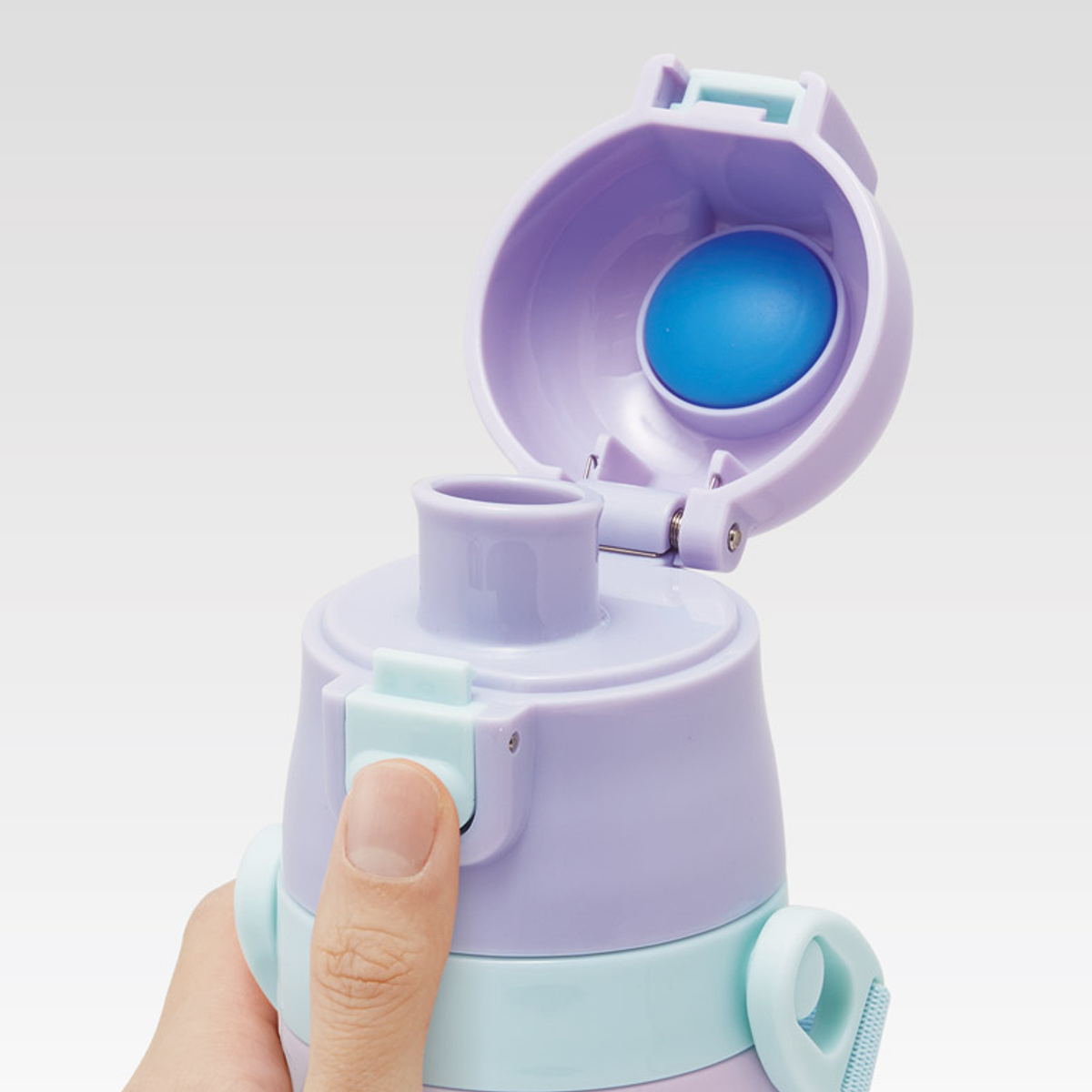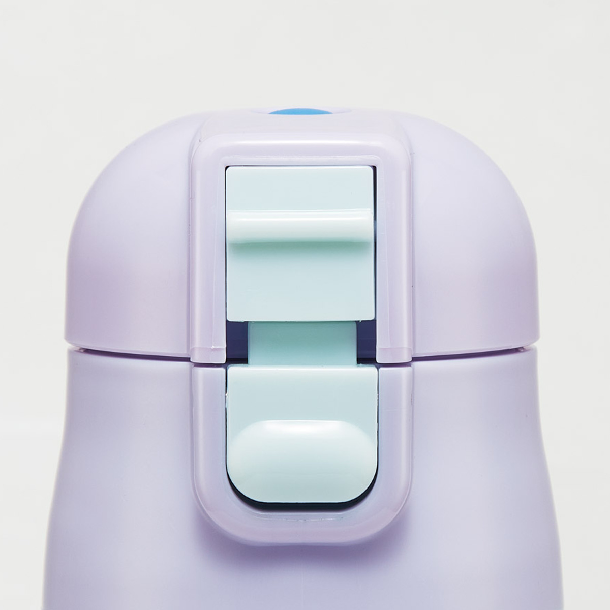 水筒の蓋はボタンを押すだけで開けることができるワンタッチ式です。飲み終わったら蓋をカチッと閉めるだけなので、小さなお子様でも簡単に開閉できます。