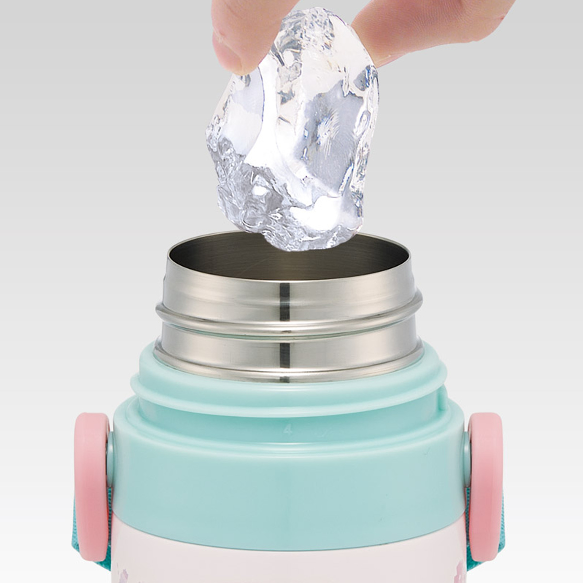 蓋と中栓を付けると、コップ飲みの水筒になります。温かい飲み物や冷たい飲み物にもご使用いただけます。