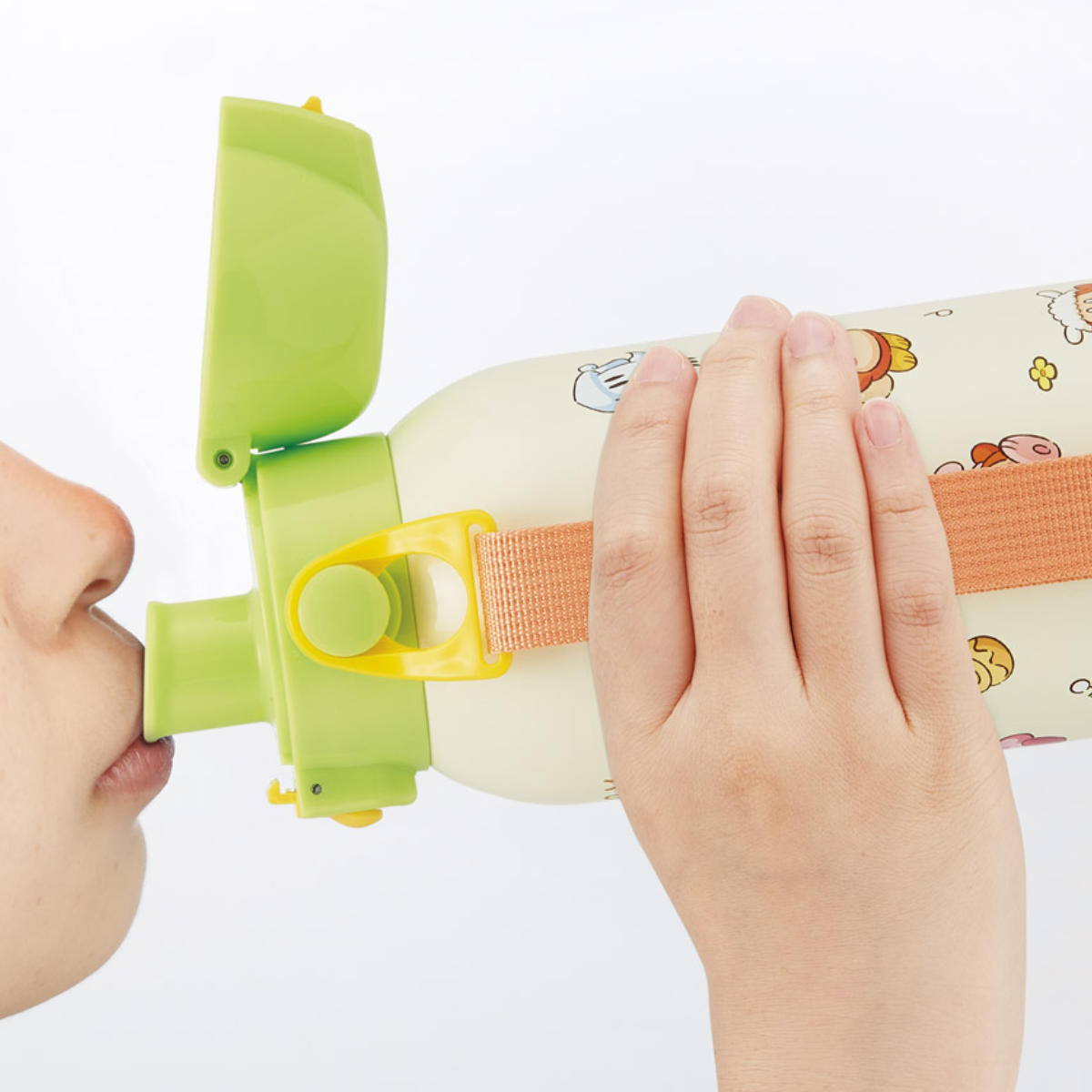 飲む時に蓋が戻らないキャップロック設計。片手で素早くスムーズに水分補給できます。