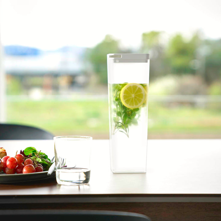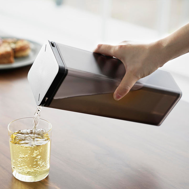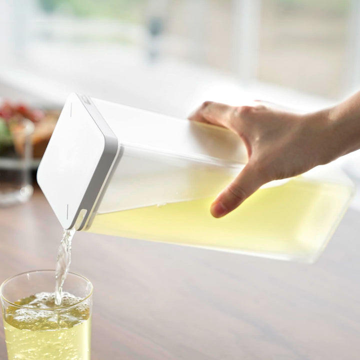 容量1.2Lのスリムな冷水筒です。1人暮らしの方やコンパクトに収納したい方におすすめです。ゆっくりと注ぎ口が下になるように傾けるだけで簡単に注ぐことができます。