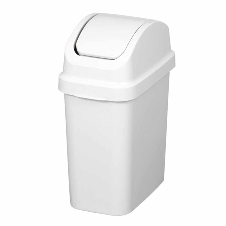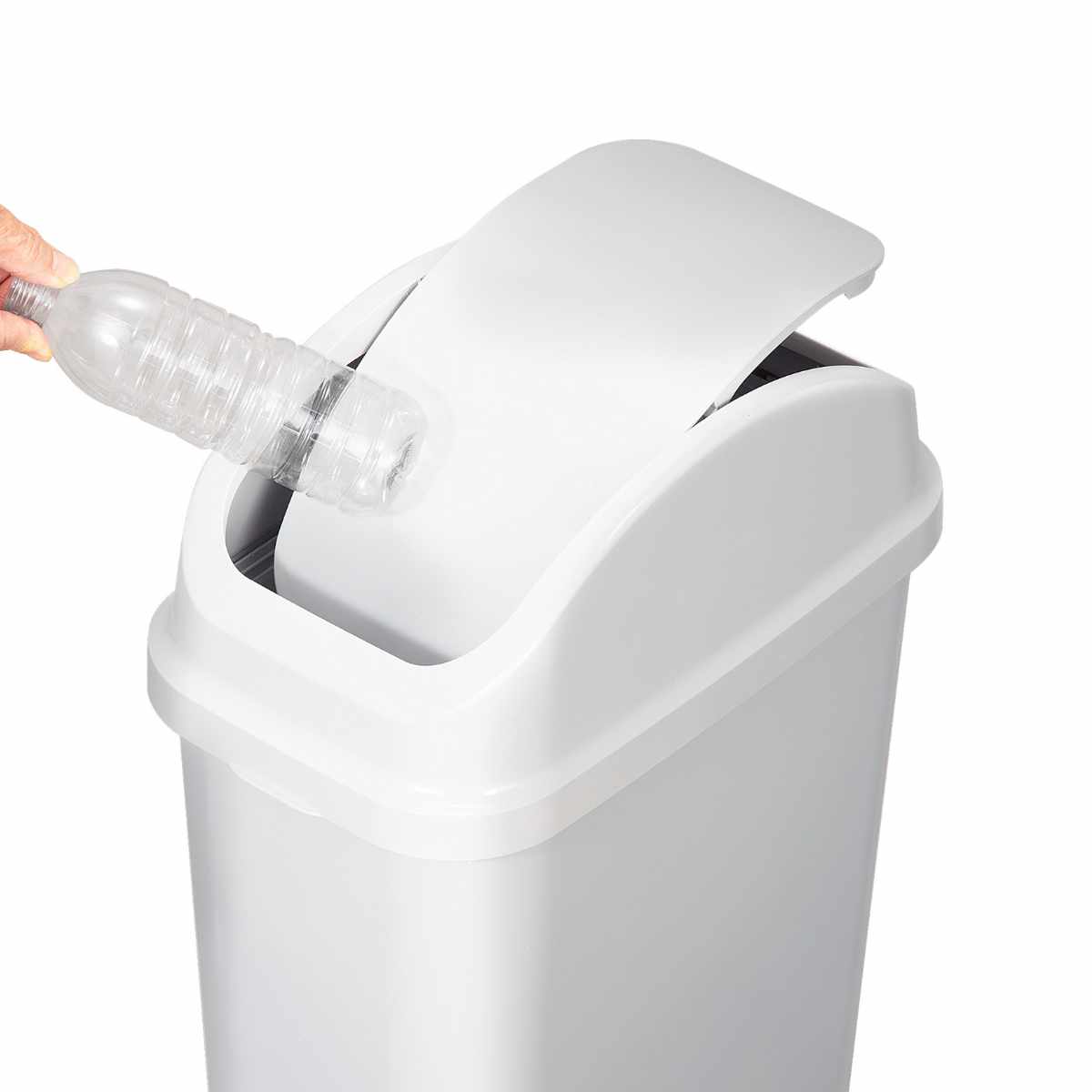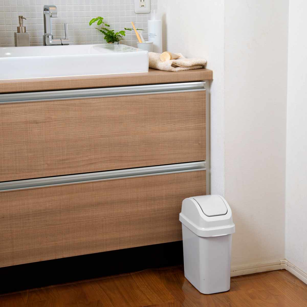 軽く押すだけで、片手でゴミが捨てられる便利なスイング式です。ふた付きで中のゴミが見えず、生活感を感じさせません。