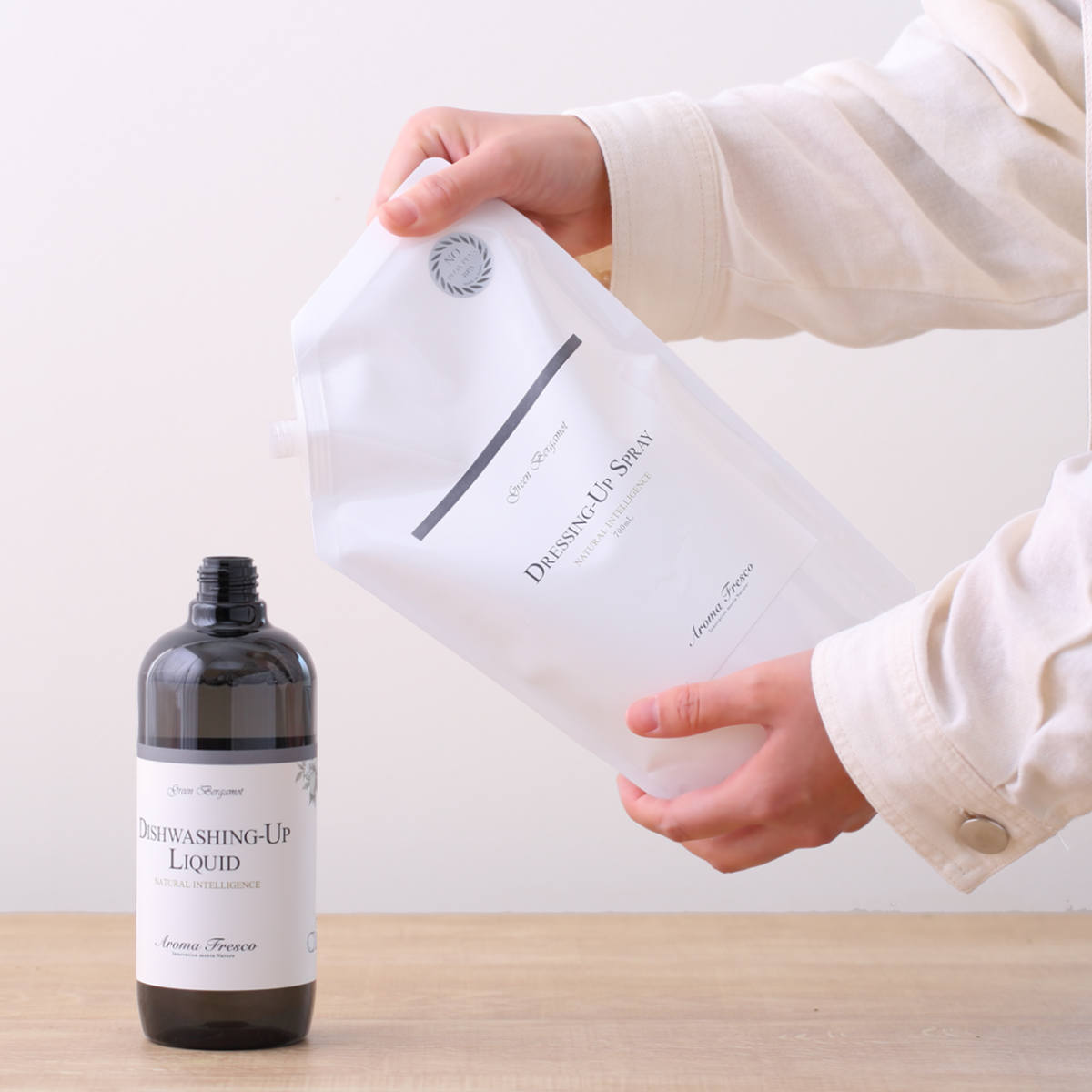 別売りで「詰替え用レフィル700ml」もございます。本体ボトルに移し替えて、環境負荷とコストを軽減して使うことができます。