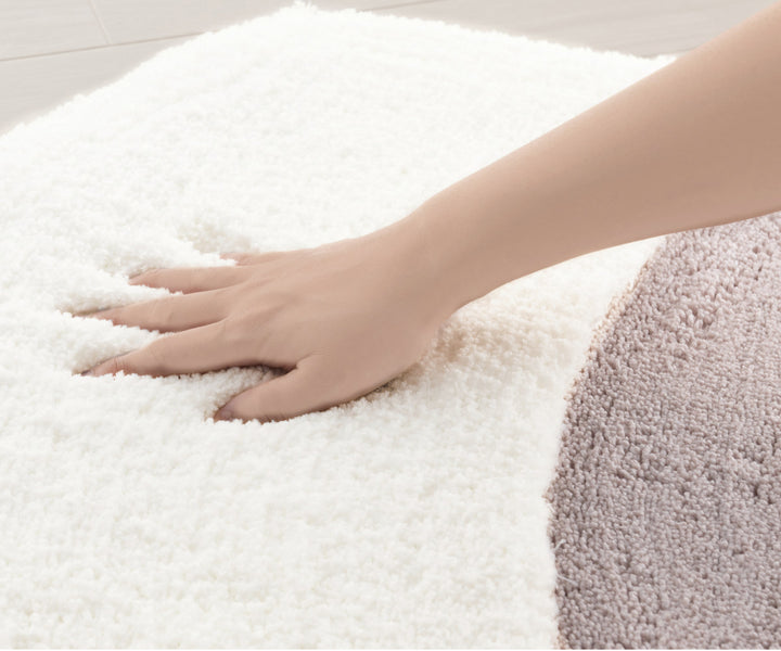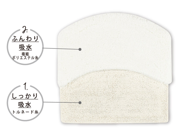 ●しっかり吸水してくれるトルネードマットと、ふんわり足触りが心地良い極細ポリエステル糸マットを、一枚のバスマットとして仕上げました。