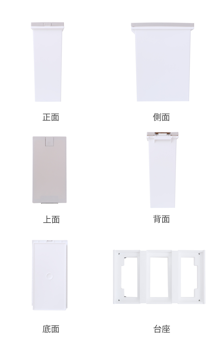 | 材質 | 本体・台座:ポリプロピレン パッキン:シリコーンゴム キャスター:ポリプロピレン・ポリカーボネート・スチール バネ:ステンレス |