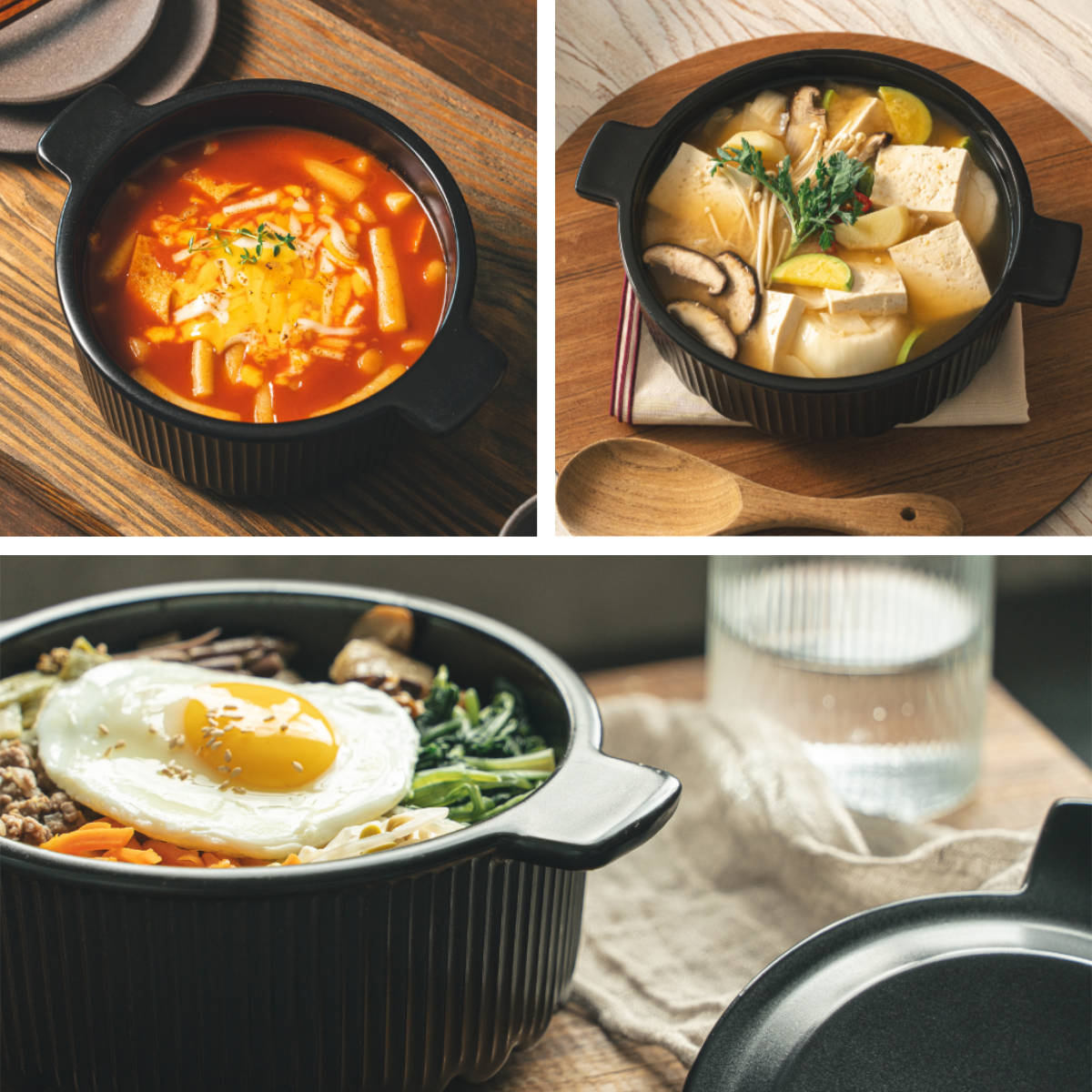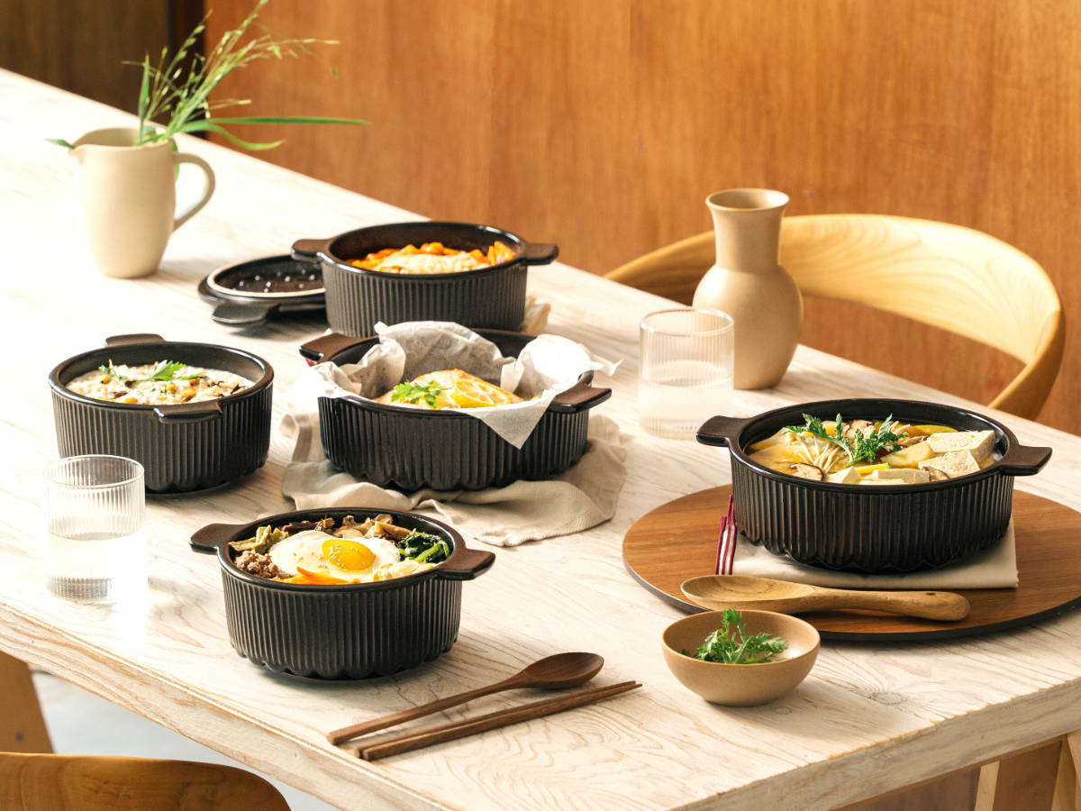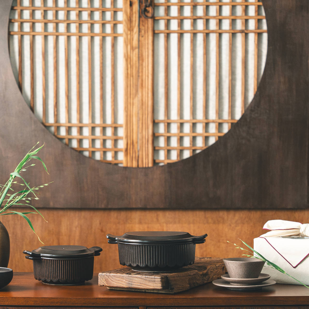 土鍋のイメージを一新する「オルム土鍋」は、韓国の伝統建築からインスパイアされたデザインが特徴です。オルムとはチェジュ島にひっそりと佇む「小さな火山」を意味します。耐久性と耐熱性に優れているので、温かさが長続きします。日々の生活にぬくもりと穏やかさをもたらす願いが込められています。