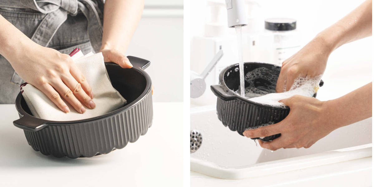 お手入れは普通のお鍋と同様に簡単です。汚れが染み込みにくい高密度のペタライト素材を使用しています。毎日の食卓に寄り添う、極上の土鍋をぜひお試しください。