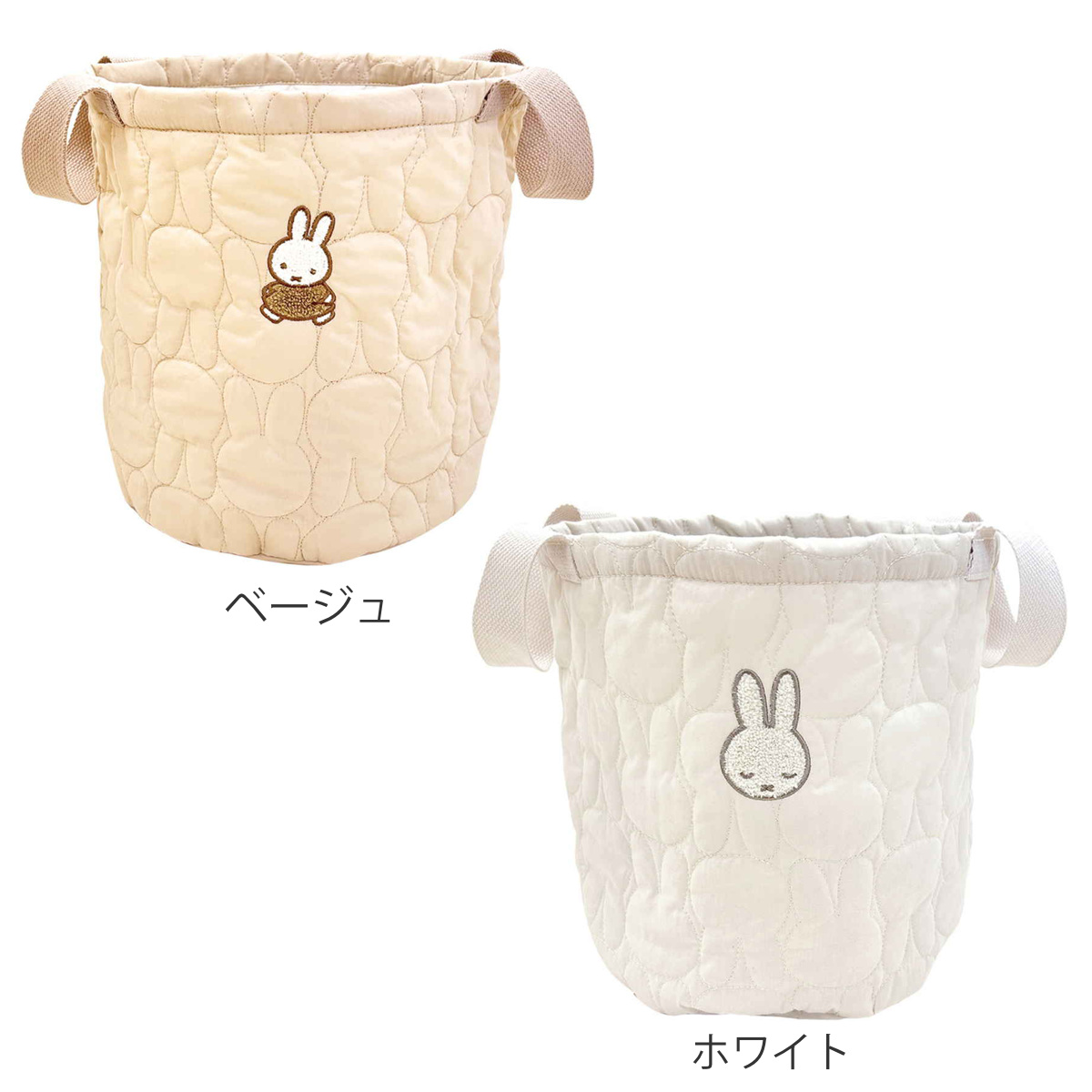 ミッフィーのキルティングストレージは、かわいさと機能性を兼ね備えた収納アイテムです。ミッフィーのシルエット型キルティングとワッペンのアクセントで、お部屋のインテリアにもぴったりです。衣類やぬいぐるみ、おもちゃをスッキリ整理整頓でき、やさしいベージュカラーなので、どんな空間にも馴染みやすく、優しい雰囲気を演出します。うれしい持ち手付きで、必要な場所への持ち運びもしやすいです。
