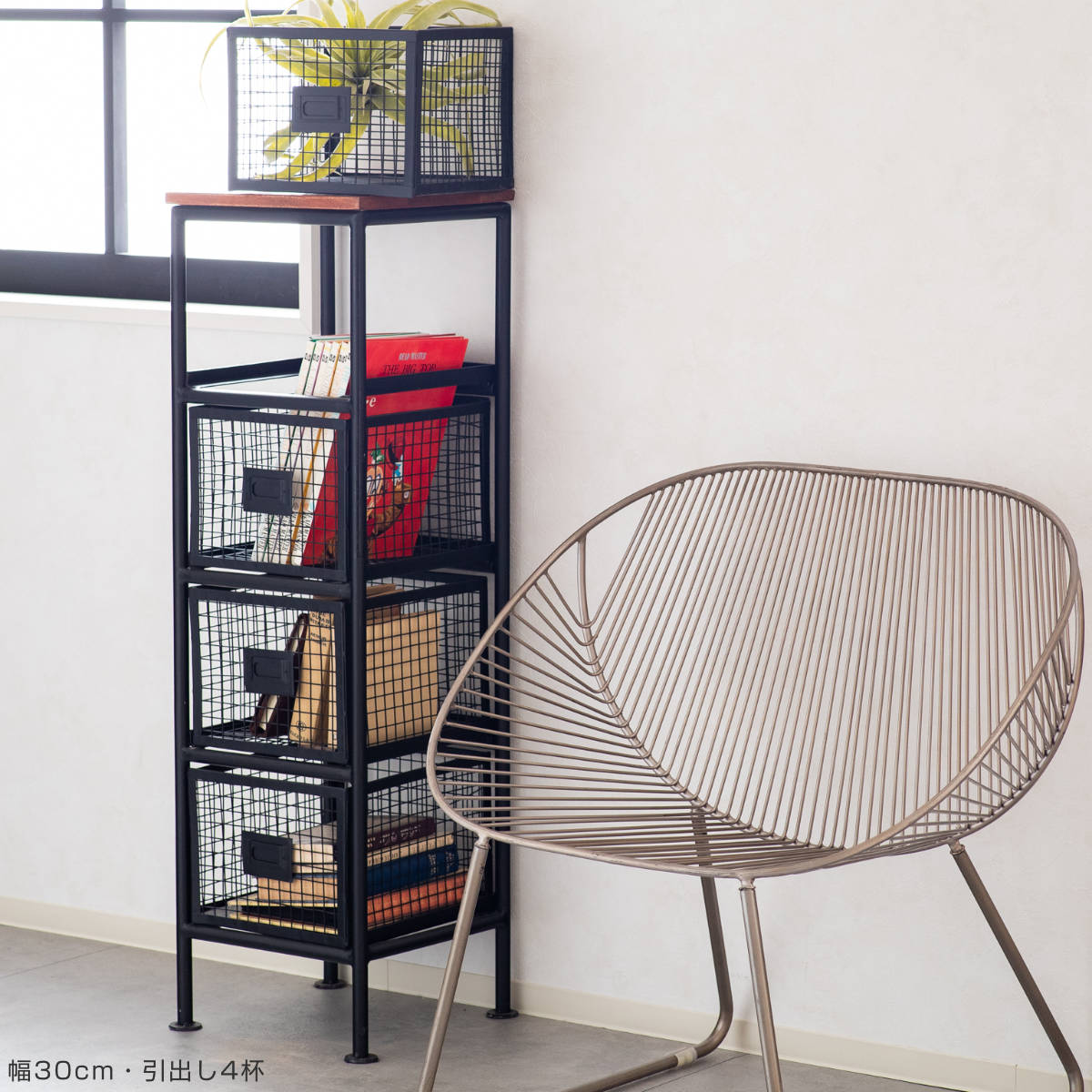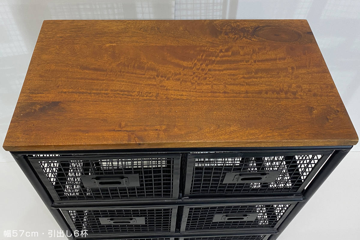 異素材組み合わせのメッシュチェスト 幅111cm・引出し4杯