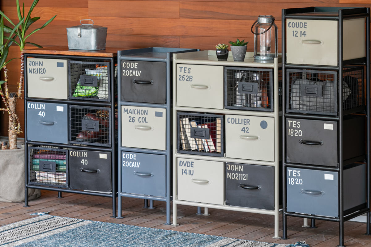 テイストが異なる中が見えない引出しの「MSGシリーズ」とサイズを共有しているので、引出しを入れ替えて使えば楽しさアップです。