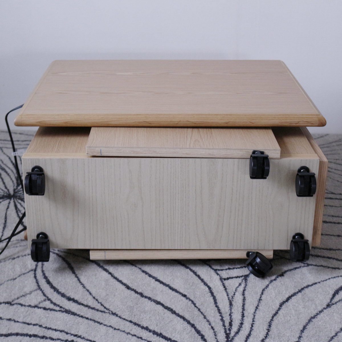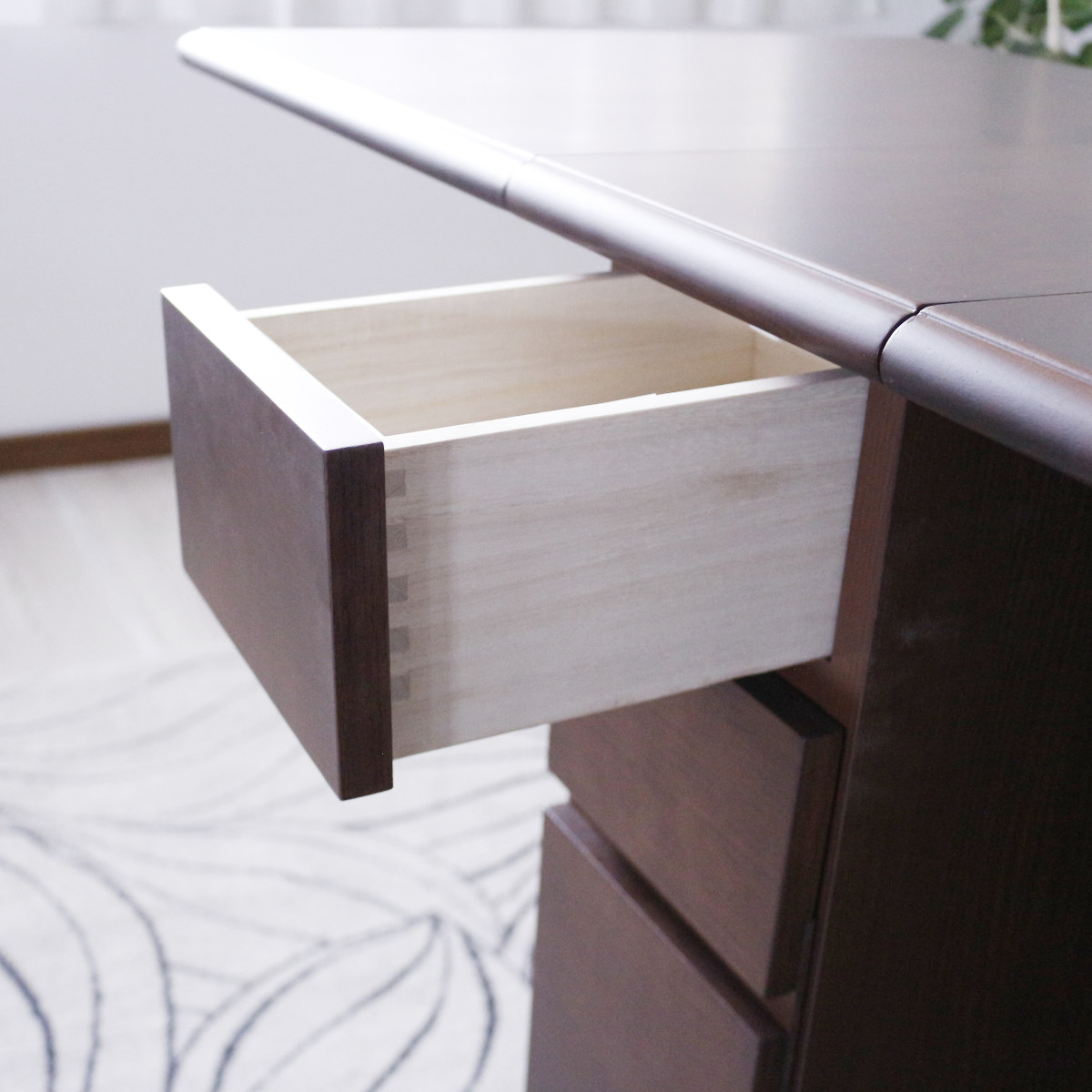 テーブルには引き出しが付いています。リモコンや筆記用具、眼鏡などのテーブルの周りで使う物を収納しておくのに便利です。