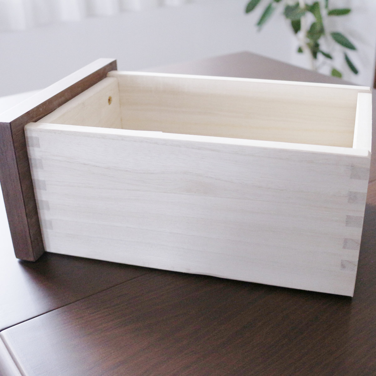 引き出しの内部には上質な桐材を贅沢に使用しています。凹凸をかみ合わせた編み方をしているため、耐久性に優れており長く安心してお使いいただけます。