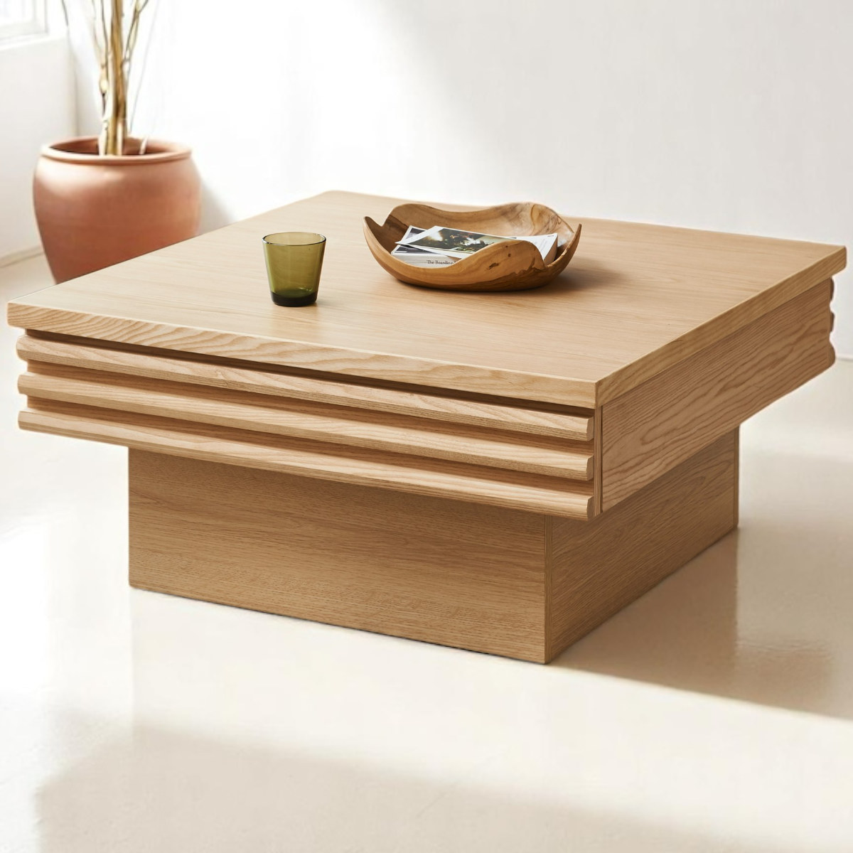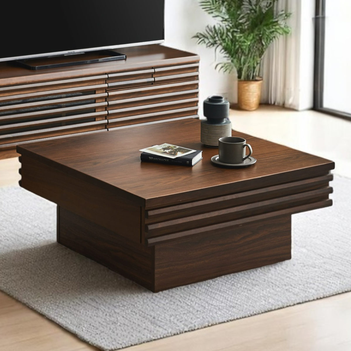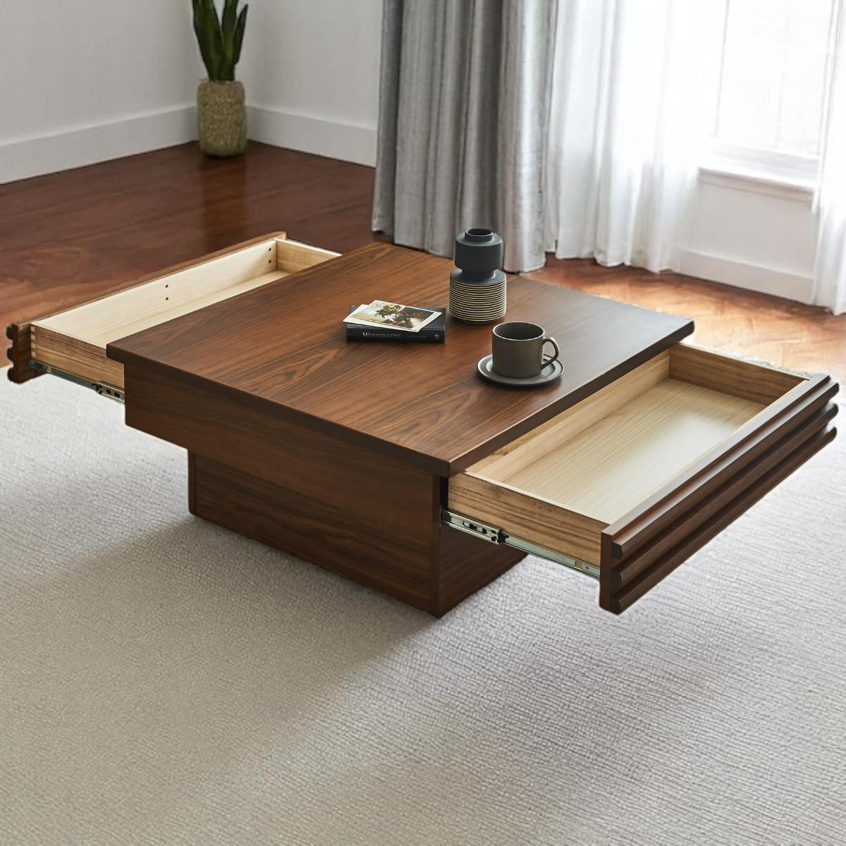 リビングテーブル 高さ37cm 天板正方形 引出し付 センターテーブル