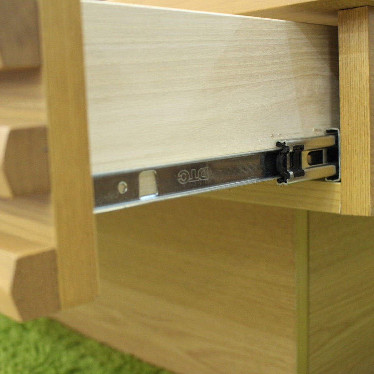 2杯の引き出しはフルスライドレール仕様なのでスムーズな開閉ができます。奥までしっかり引き出すことができるので、中が見やすく奥の物まで取りだしやすいです。