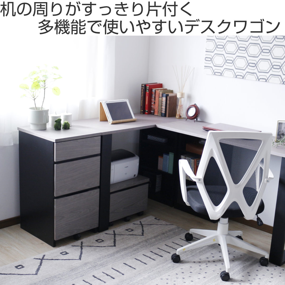 グレー×ブラックでモダンな雰囲気に仕上げたデスクワゴンです。シンプルで使いやすく机の上がスッキリと片付けられる、デザイン性と機能性を兼ね備えています。自分好みの快適なコーナースペースを演出できます。