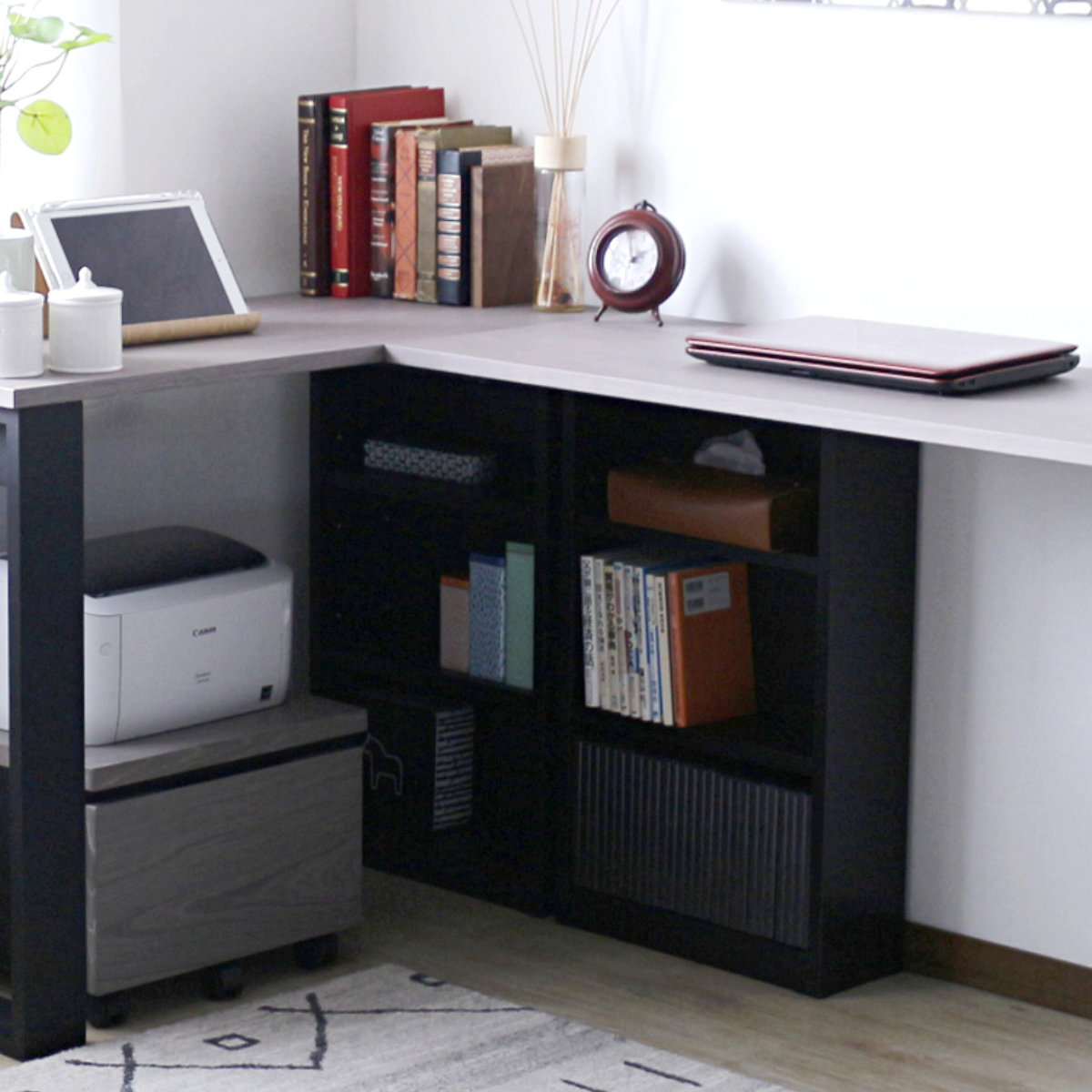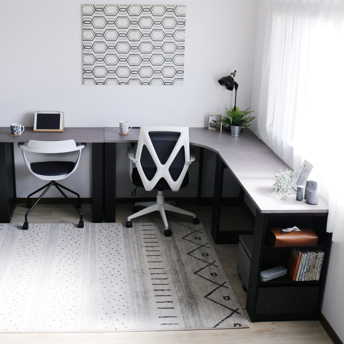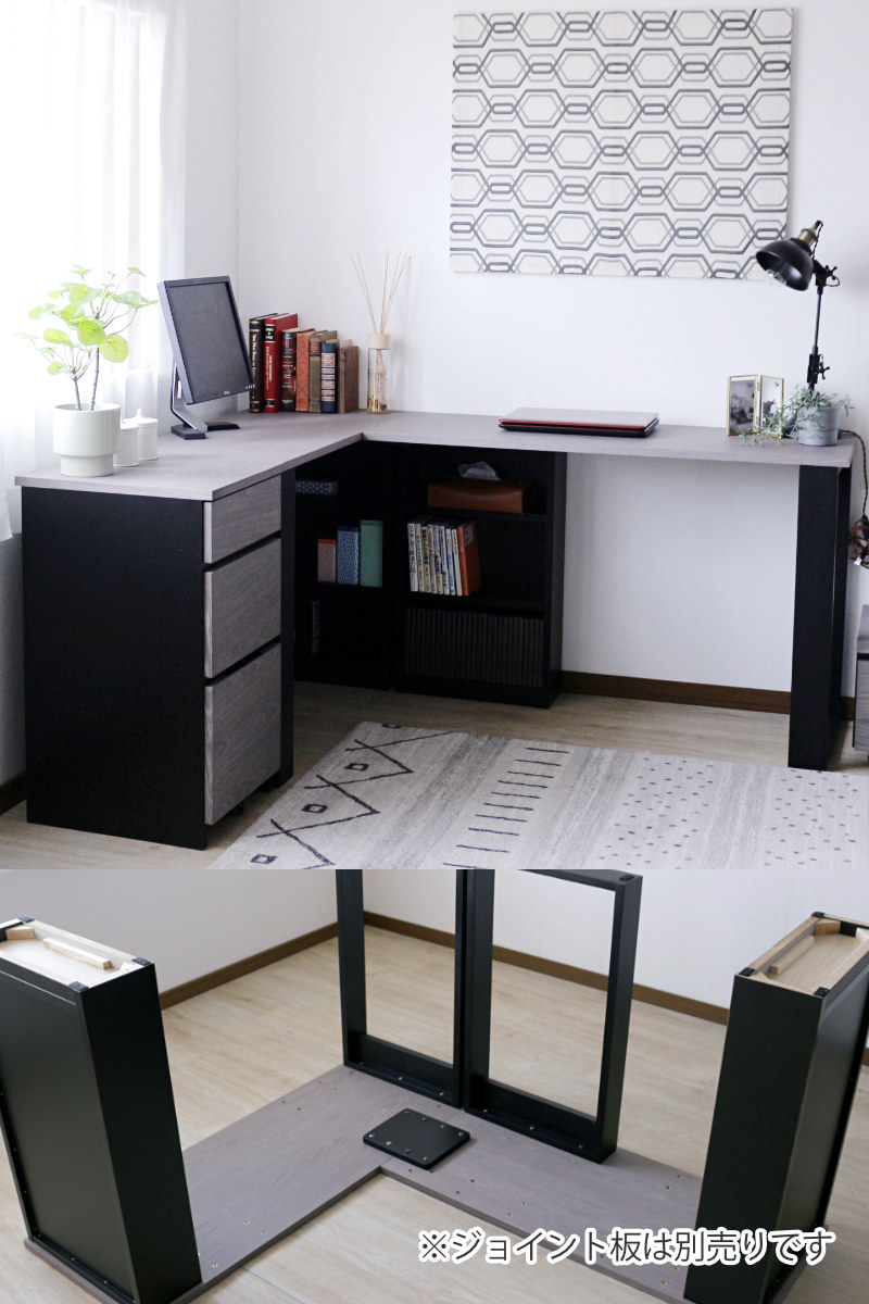 別売りのジョイント板を使用し、幅100cmと120cmのデスクを横並びやL字にジョイントすることができます。