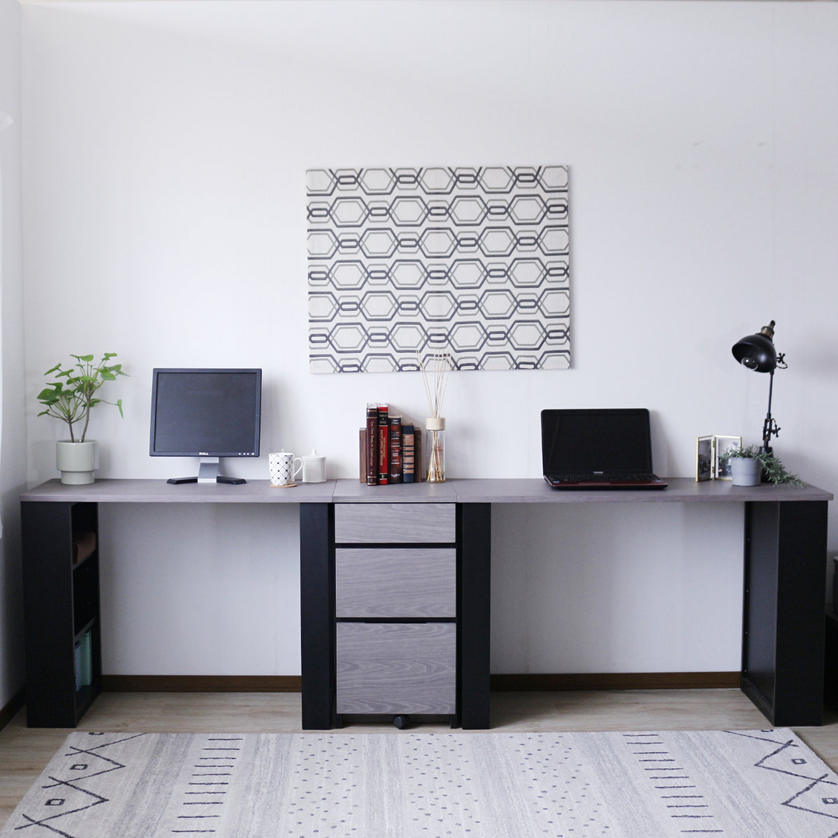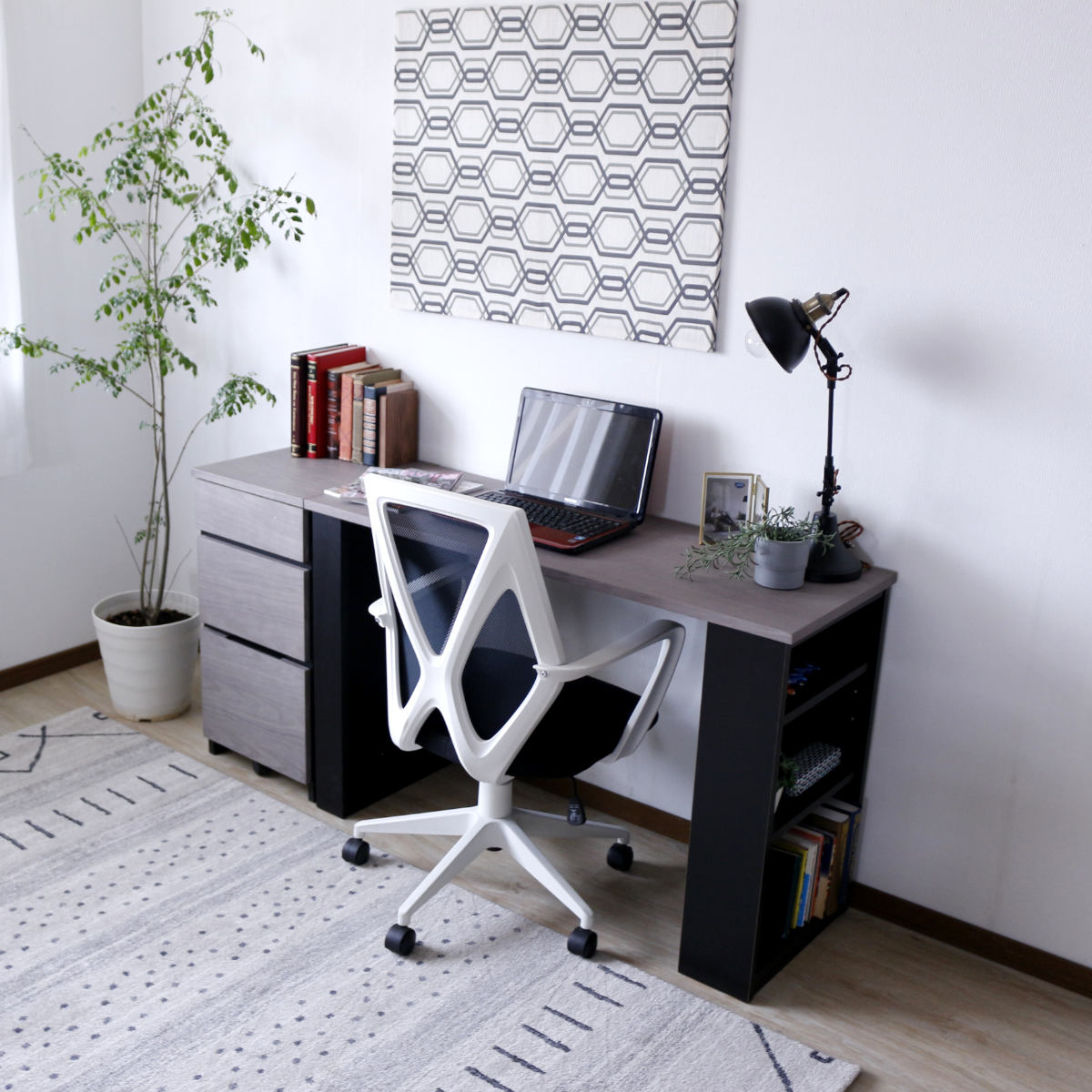 グレー×ブラックでモダンな雰囲気に仕上げた幅120cmのデスクです。シンプルで使いやすくお部屋の間取りや用途に合わせて組み合わせられる、デザイン性と機能性を兼ね備えています。左右にしっかりスペースが取れ、ゆったり作業することができます。