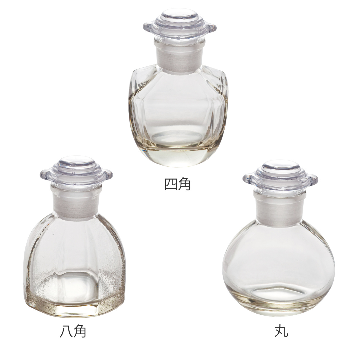 50mlと小さめのサイズなので、食卓に置いても主張しすぎません。シンプルな形状も魅力で、四角は「安定」、丸は「調和」、その二つの要素を合わせ持ち「バランスがよい」とされる八角の、3型からお選びいただけます。また3型揃えて並べてもバランスが良く、食卓の片隅におしゃれに収まります。