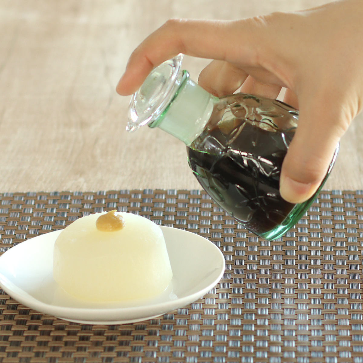 醤油だけでなく、お酢を入れてもお使いいただけます。ガラスは色やニオイが付きにくいので、香りの強い調味料を入れても安心です。