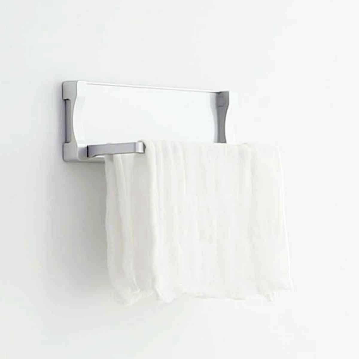 ●マグネットでひっつき、スッキリ収納できるタオルかけです。