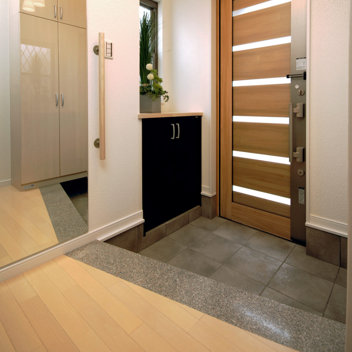 座面下の収納棚にはスリッパや靴、靴のお手入れ用品などを置けるので空間の有効活用ができます。