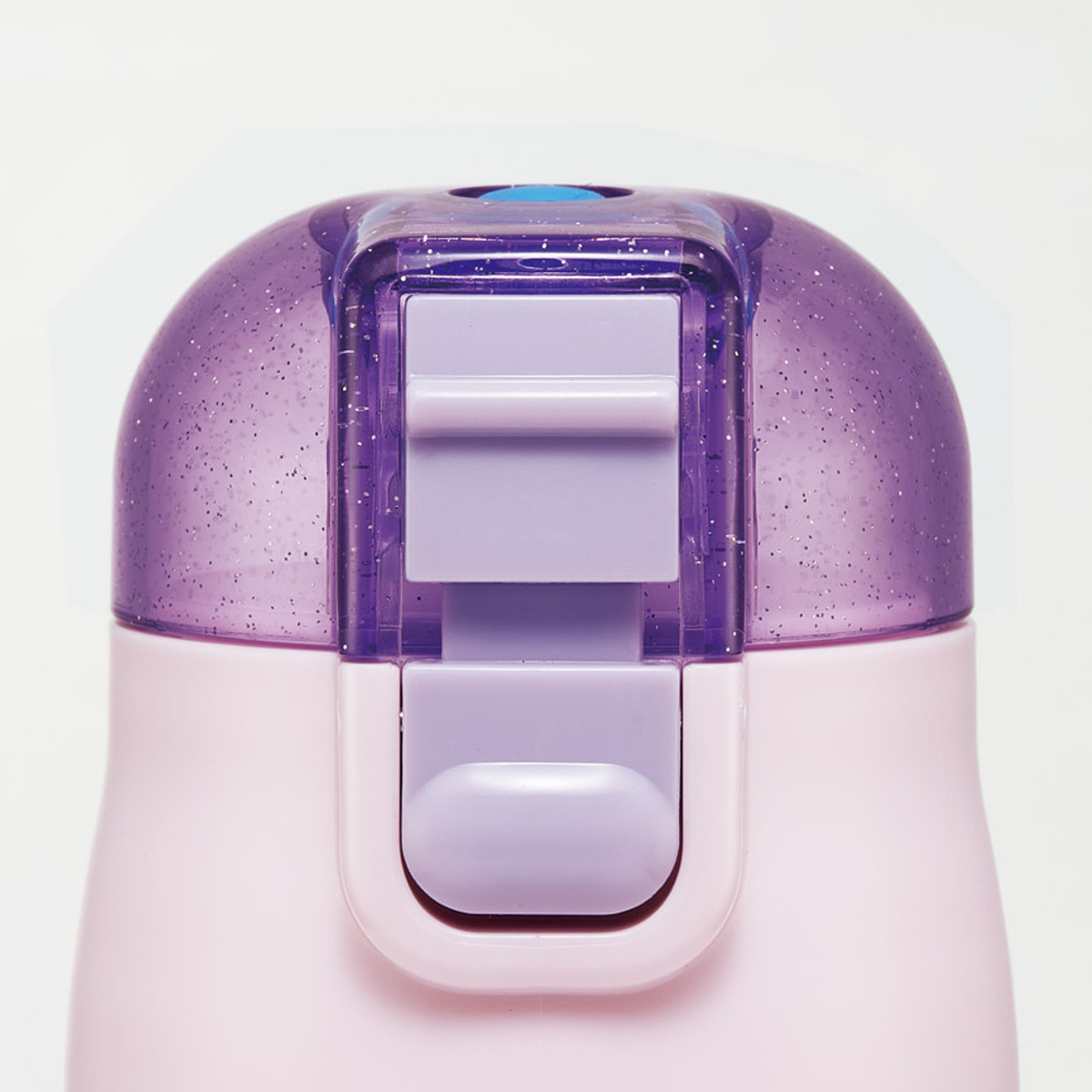 水筒の蓋はボタンを押すだけで開けることができるワンタッチ式です。飲み終わったら蓋をカチッと閉めるだけなので、小さなお子様でも簡単に開閉できます。