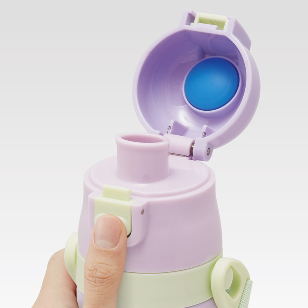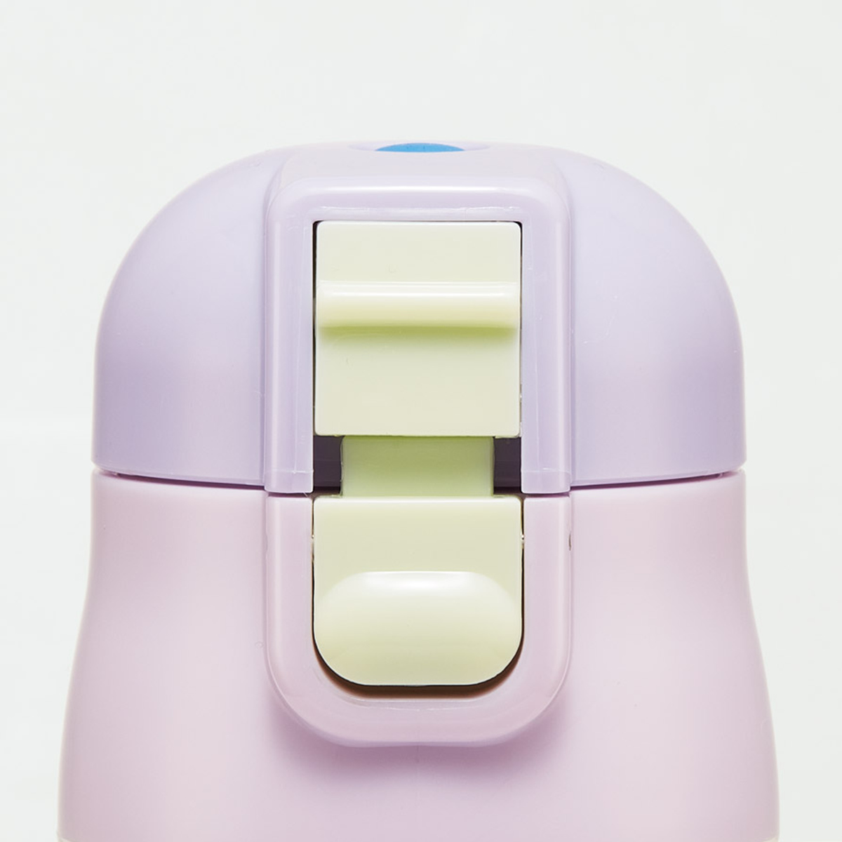 水筒の蓋はボタンを押すだけで開けることができるワンタッチ式です。飲み終わったら蓋をカチッと閉めるだけなので、小さなお子様でも簡単に開閉できます。