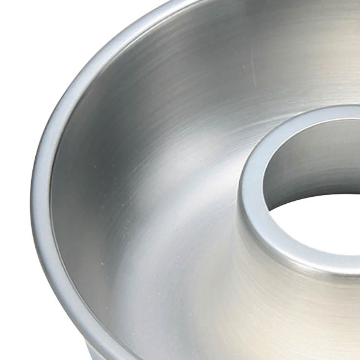 ドーナツのようなリングの形が特徴的なエンゼル型です。ケーキやパン・ゼリーやババロアにおすすめ。中央に穴があいているので火の通りが良く重い生地でも軽く焼き上がります。焼き上がったら中央にフルーツなどをトッピングすると豪華な一品の出来上がりです。