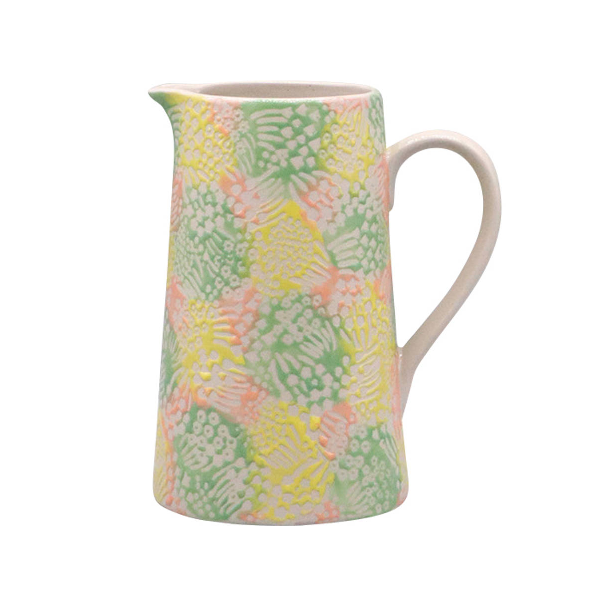 懐かしさを感じるレトロな柄が可愛いフラワーベースです。表面に凹凸のあるデザインがほっこりとした雰囲気を演出します。生花を活けるのはもちろん、オブジェのように置いているだけでも様になるアイテムです。職人が1つ1つ手作りで仕上げた、ぬくもりのある表情が魅力的です。