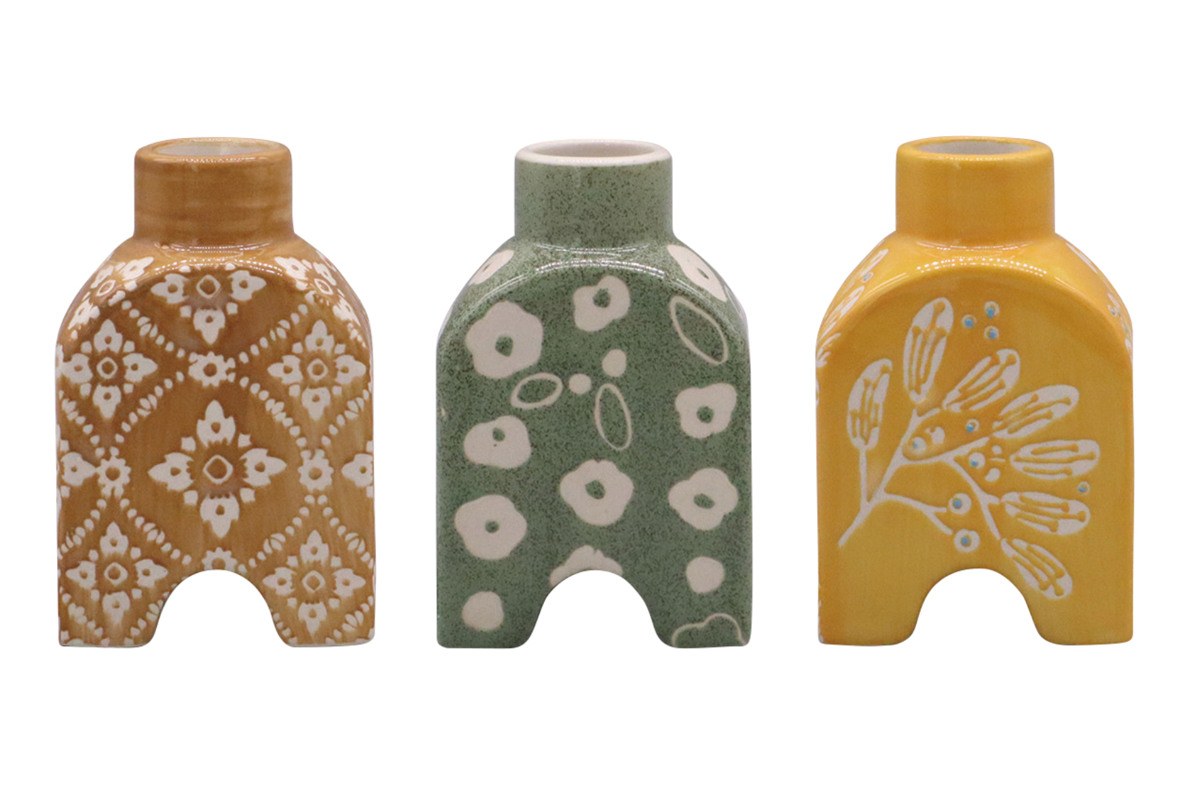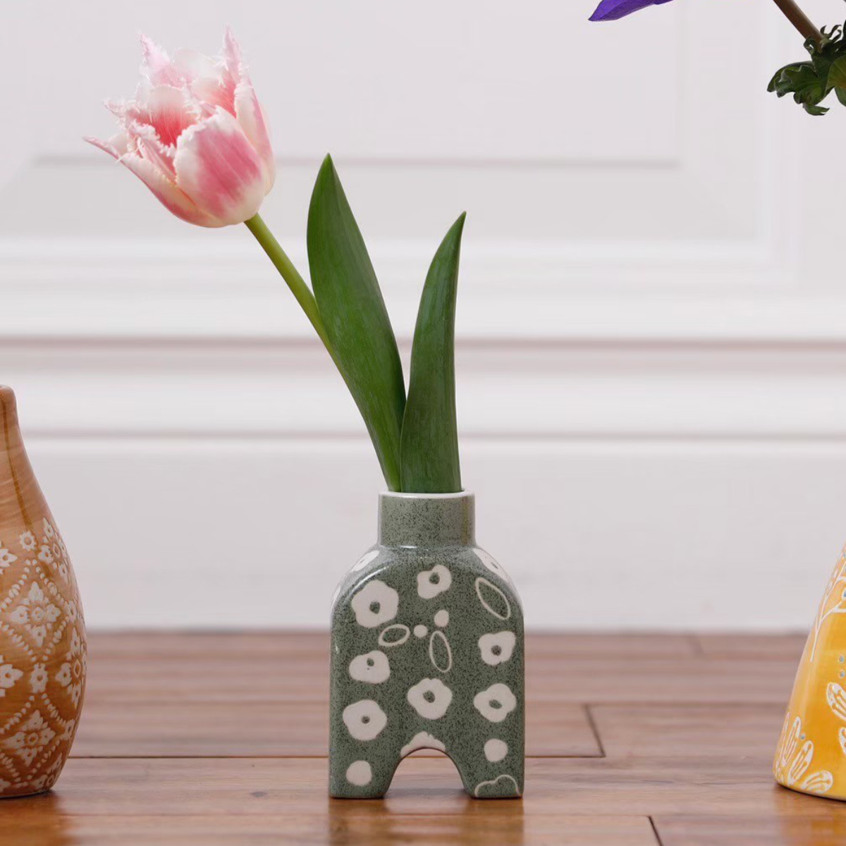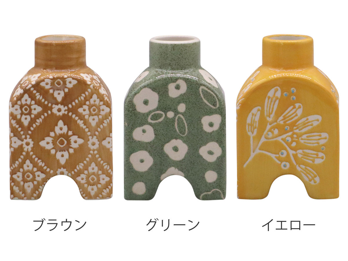 東欧風の絵柄がかわいい小さなセラミックベースです。オブジェとしてお部屋にさりげなく飾っておくだけでも雰囲気のある空間を演出してくれます。