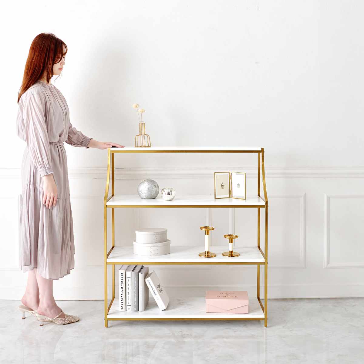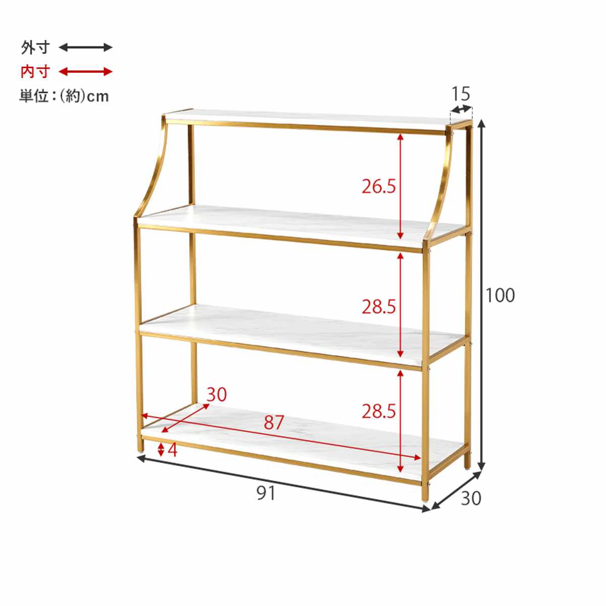大理石調×ゴールドのエレガントなオープンラック 幅91cm