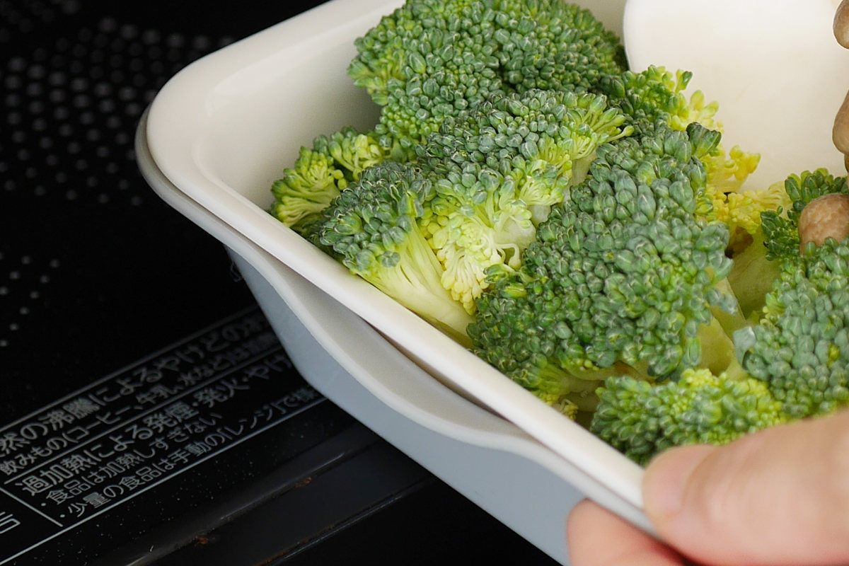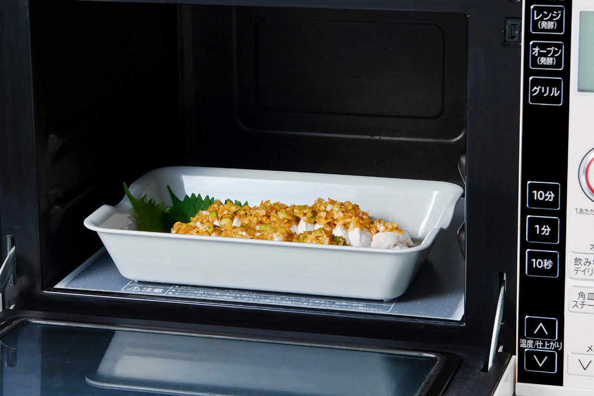 下ごしらえした食材をそのままレンジにかけられるのでとっても便利。耐熱皿に移し替える手間が省けて、洗い物も減らせます。
