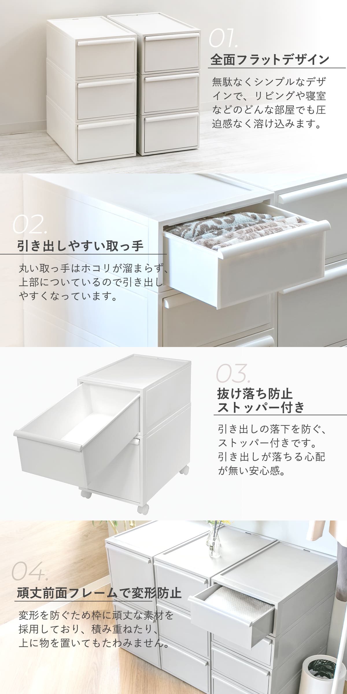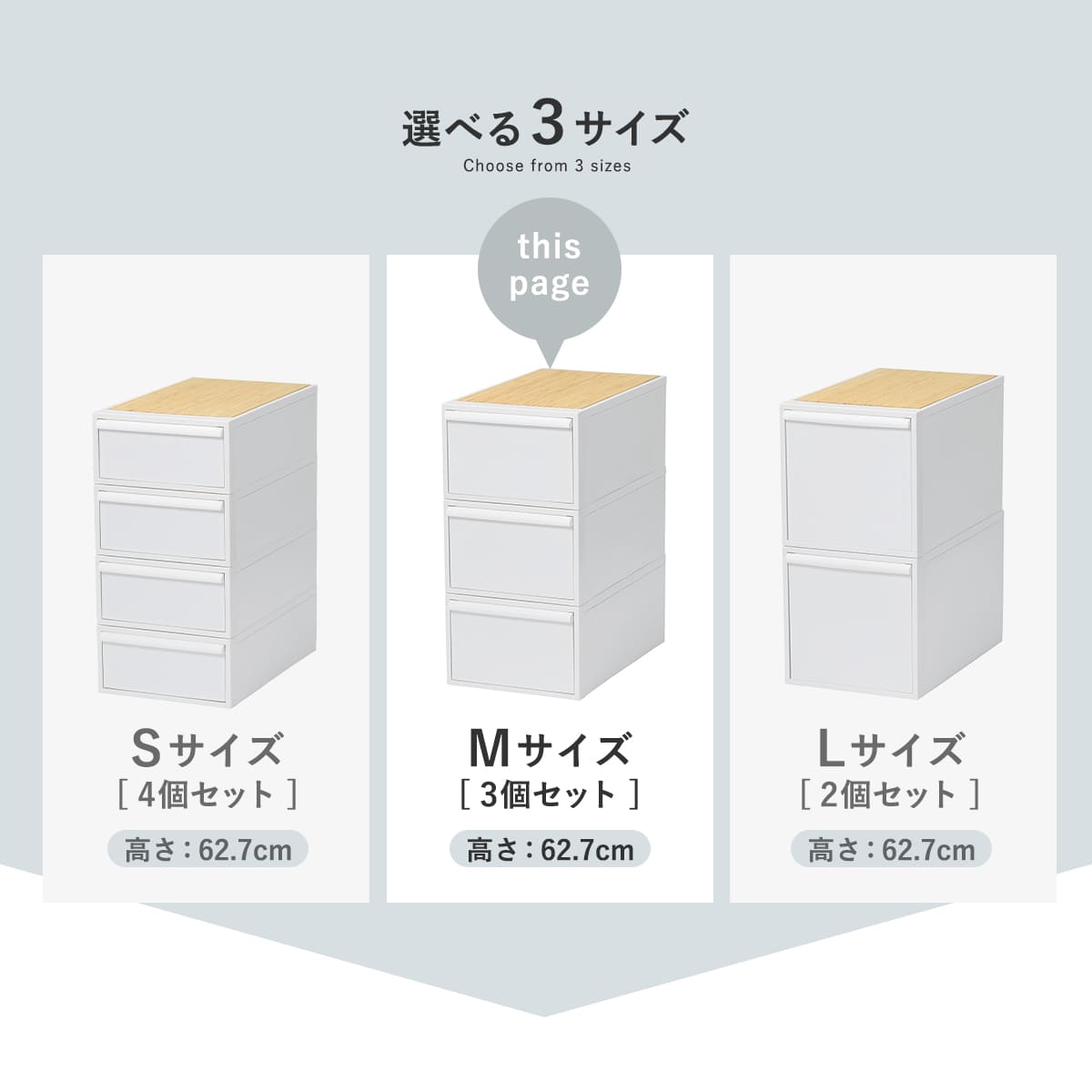 収納ケース 天板付き 同色3個セット 引き出し M 幅32×奥行52×高さ21.5cm クローゼットシステム